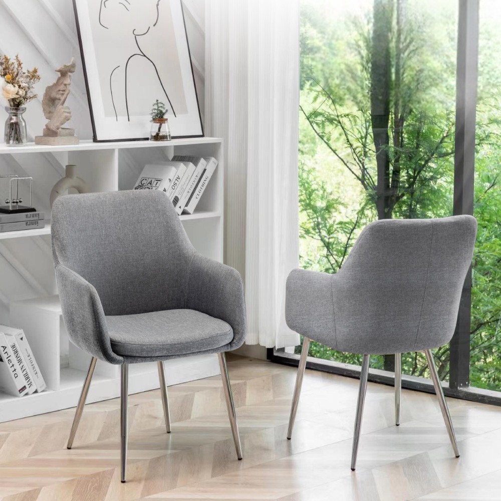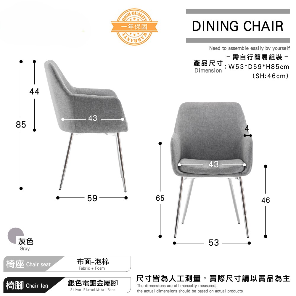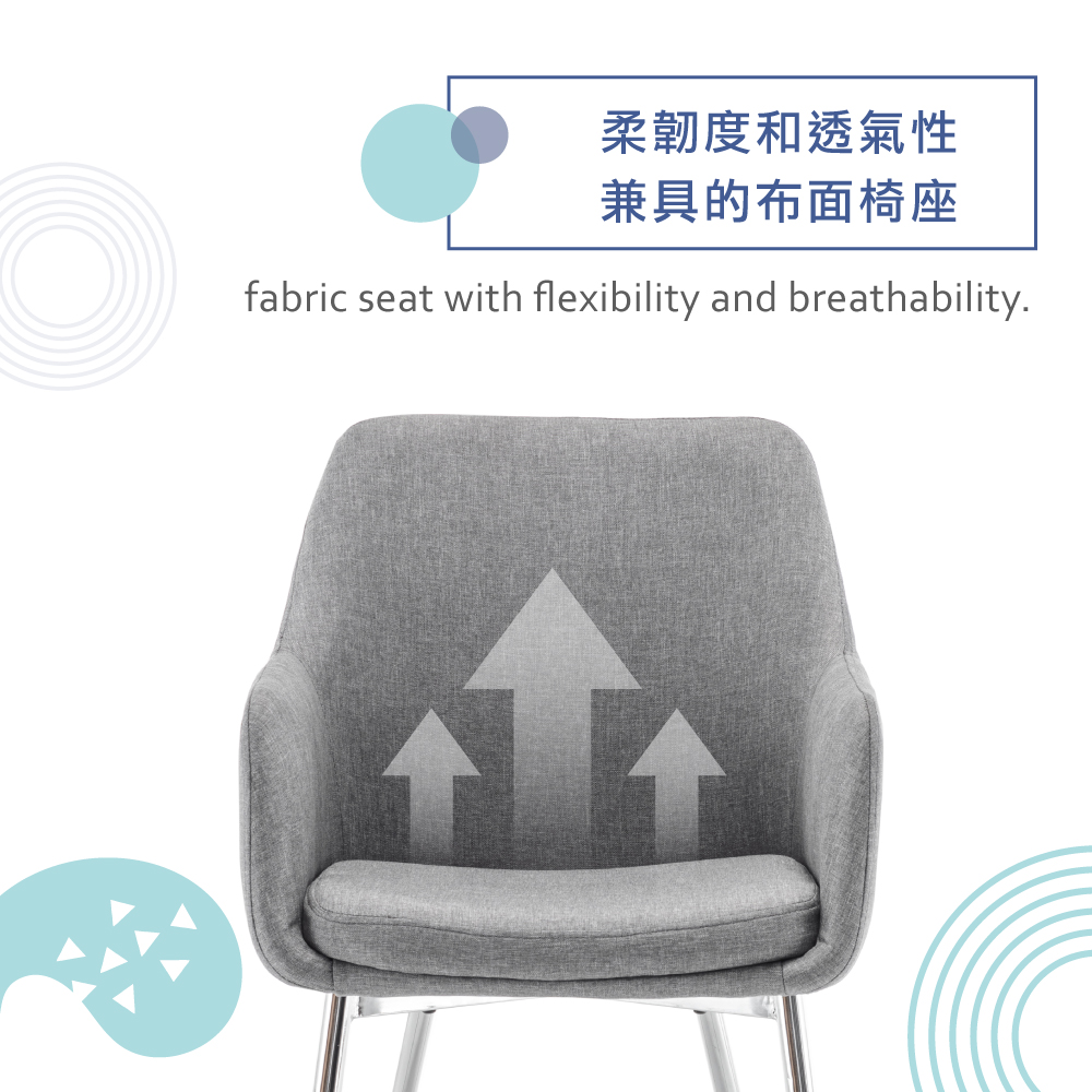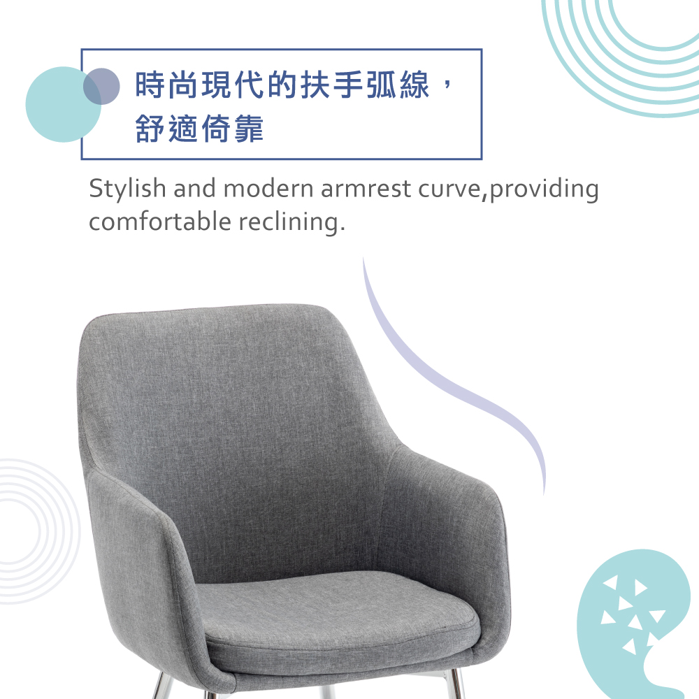 Alono雅洛諾簡約布面扶手電鍍腳休閒餐椅-灰色