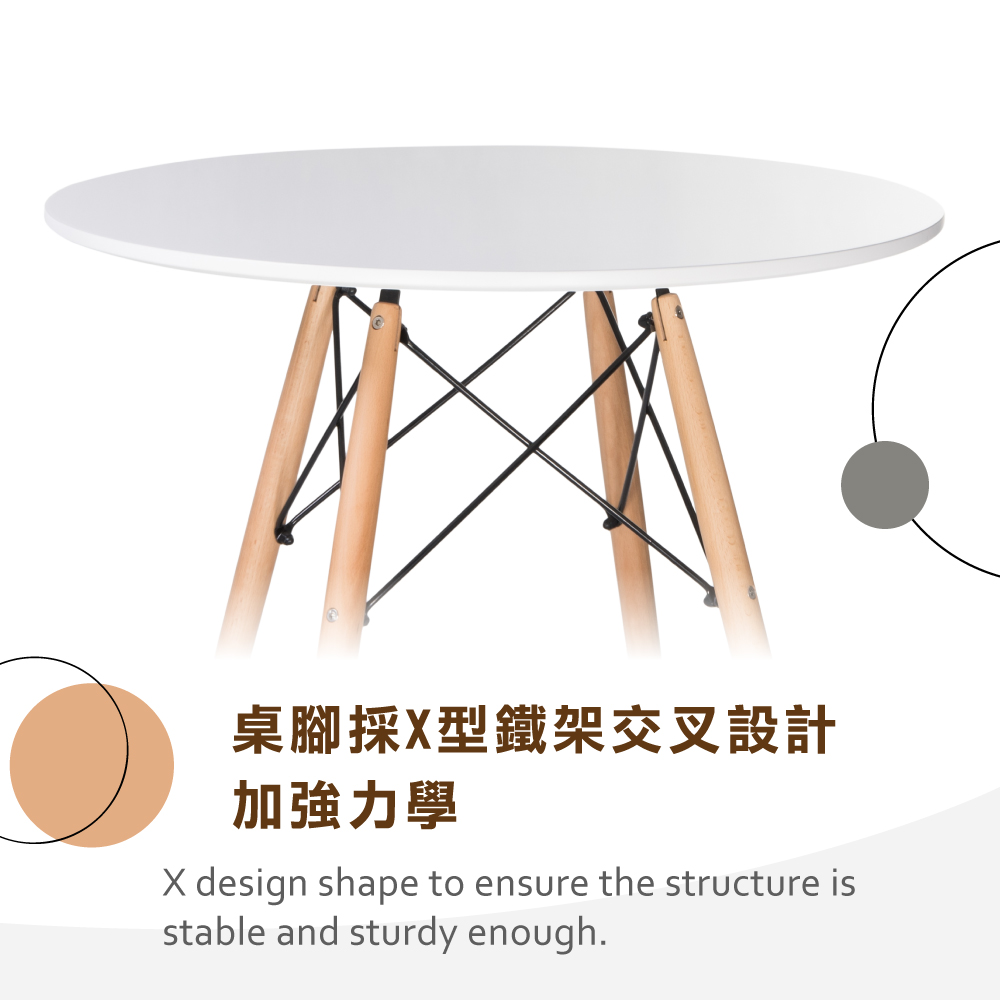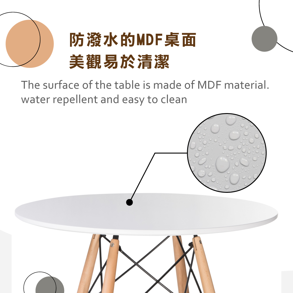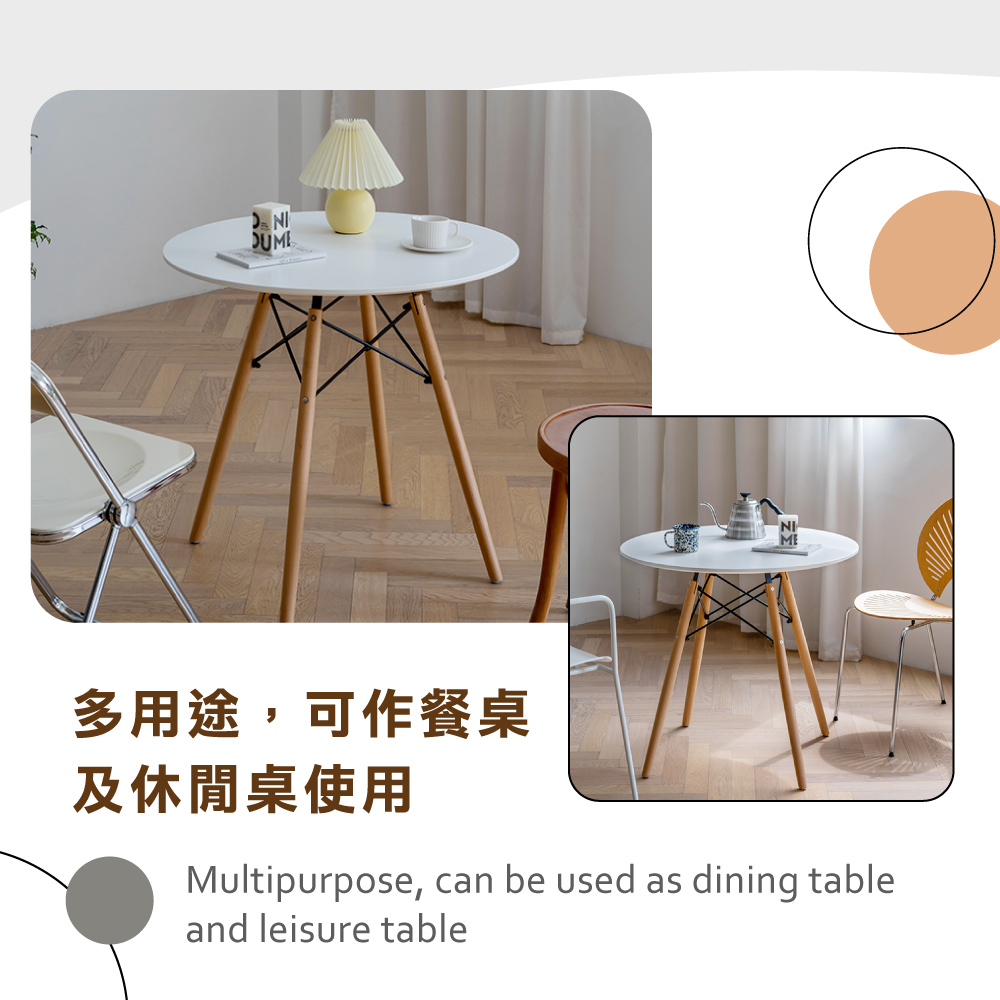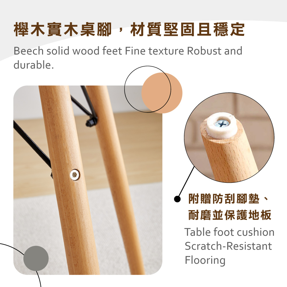 櫸木實木桌腳,材質堅固且穩定,附贈防刮腳墊、耐磨並保護地板,多用途,可作餐桌及休閒桌使用,