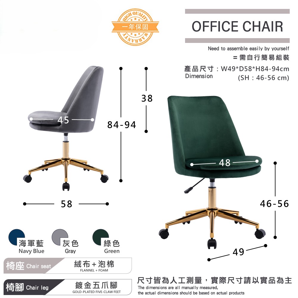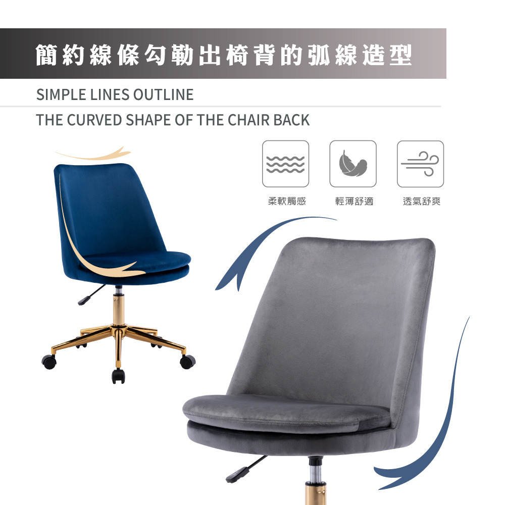 Calista卡莉絲塔簡約絨布金腳電腦椅-三色可選