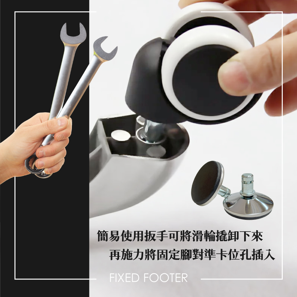 - 由於滑輪結構設計,使用時請勿把腳踩在椅腳上