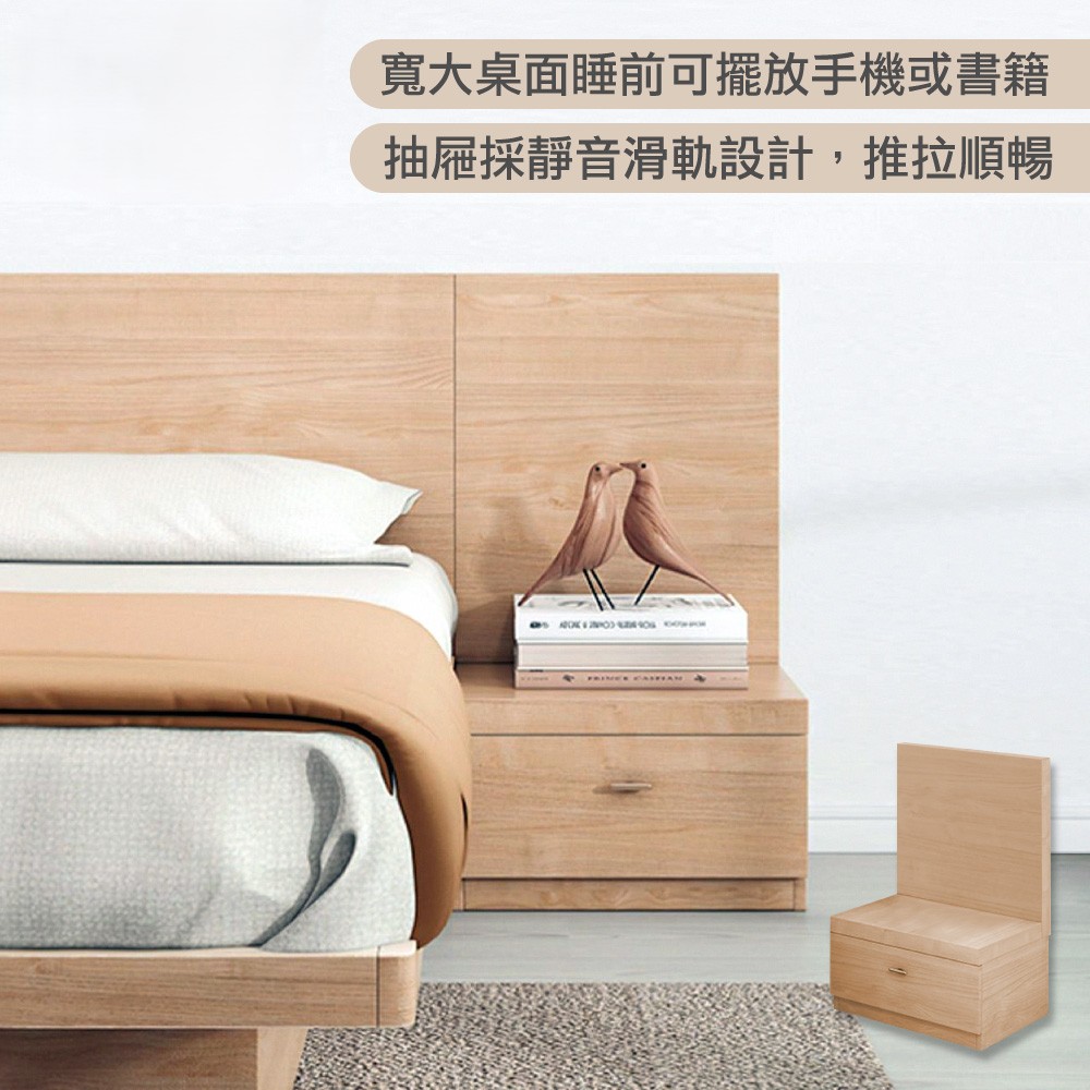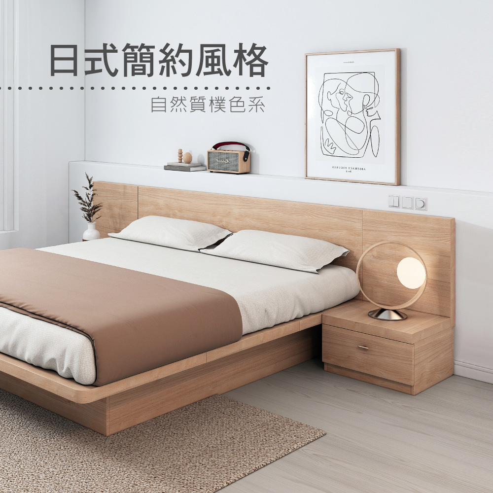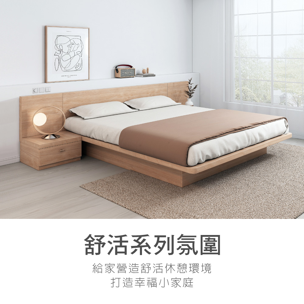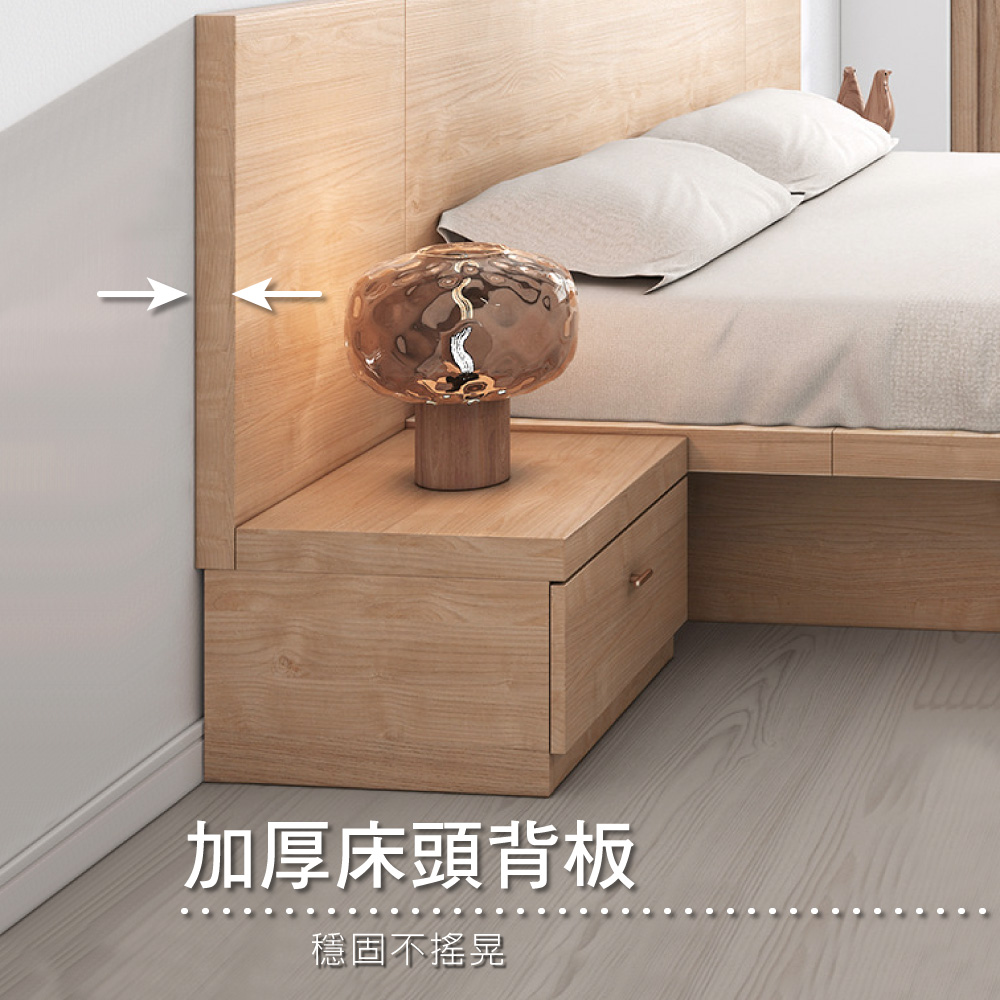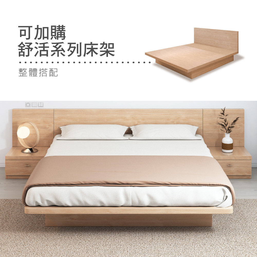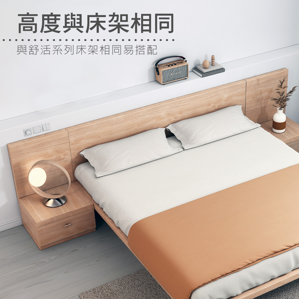 自然質樸色系結合日式簡約風格,床頭櫃加厚背板設計穩固不搖晃,高度與舒活系列床架相同易搭配,