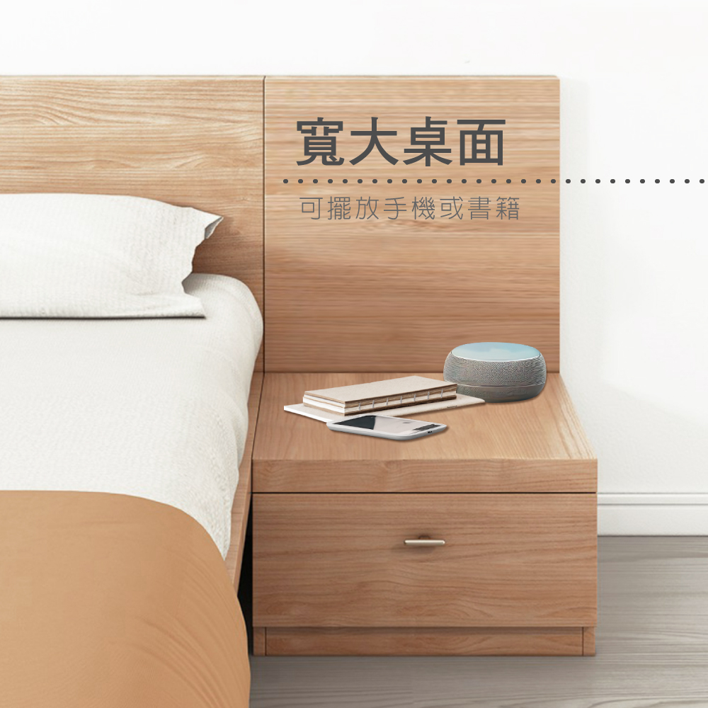 收納床邊小物輕鬆擺放方便拿取,貼心美背,美觀且降低發霉機率,可加購舒活系列床架組整體搭配,