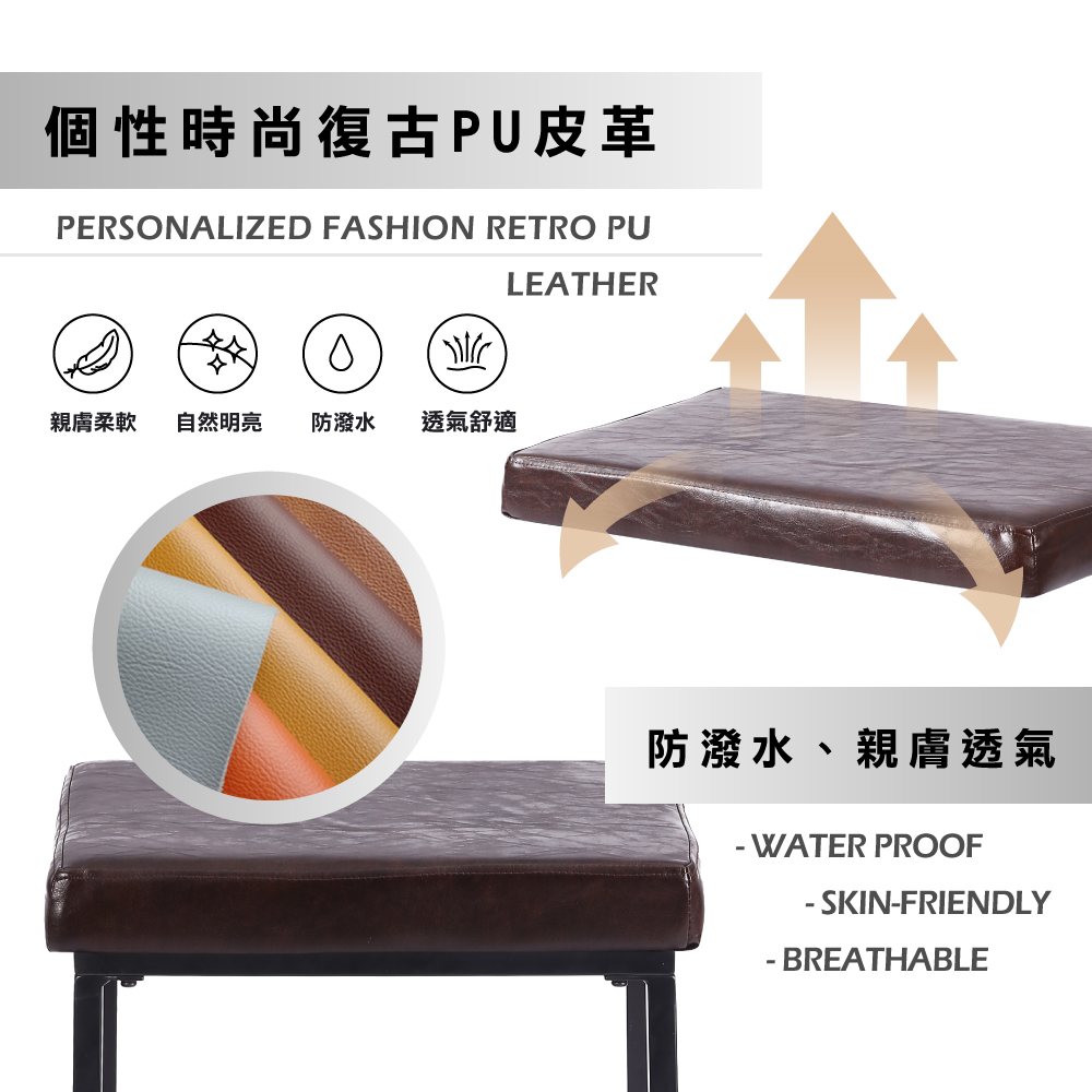 • 個性與時尚兼具的復古PU皮椅座