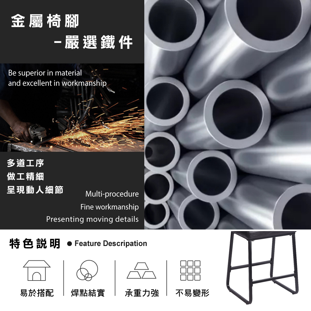 • 黑漆金屬橫桿,雙腳可舒適踩踏