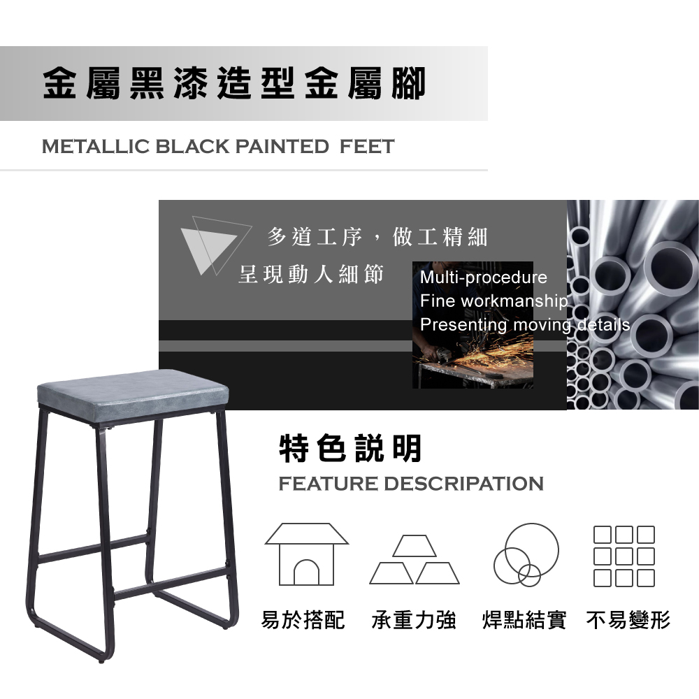 • 黑漆造型金屬腳、穩固且承重佳