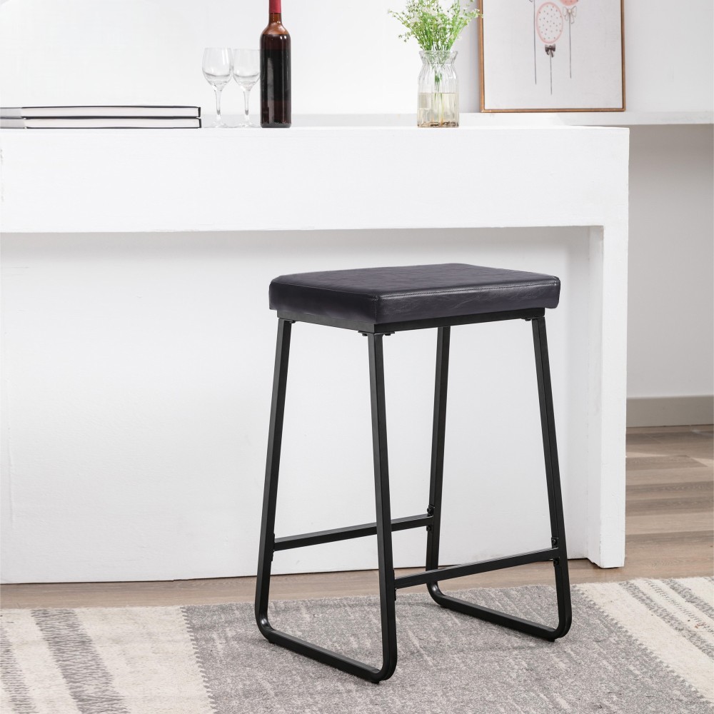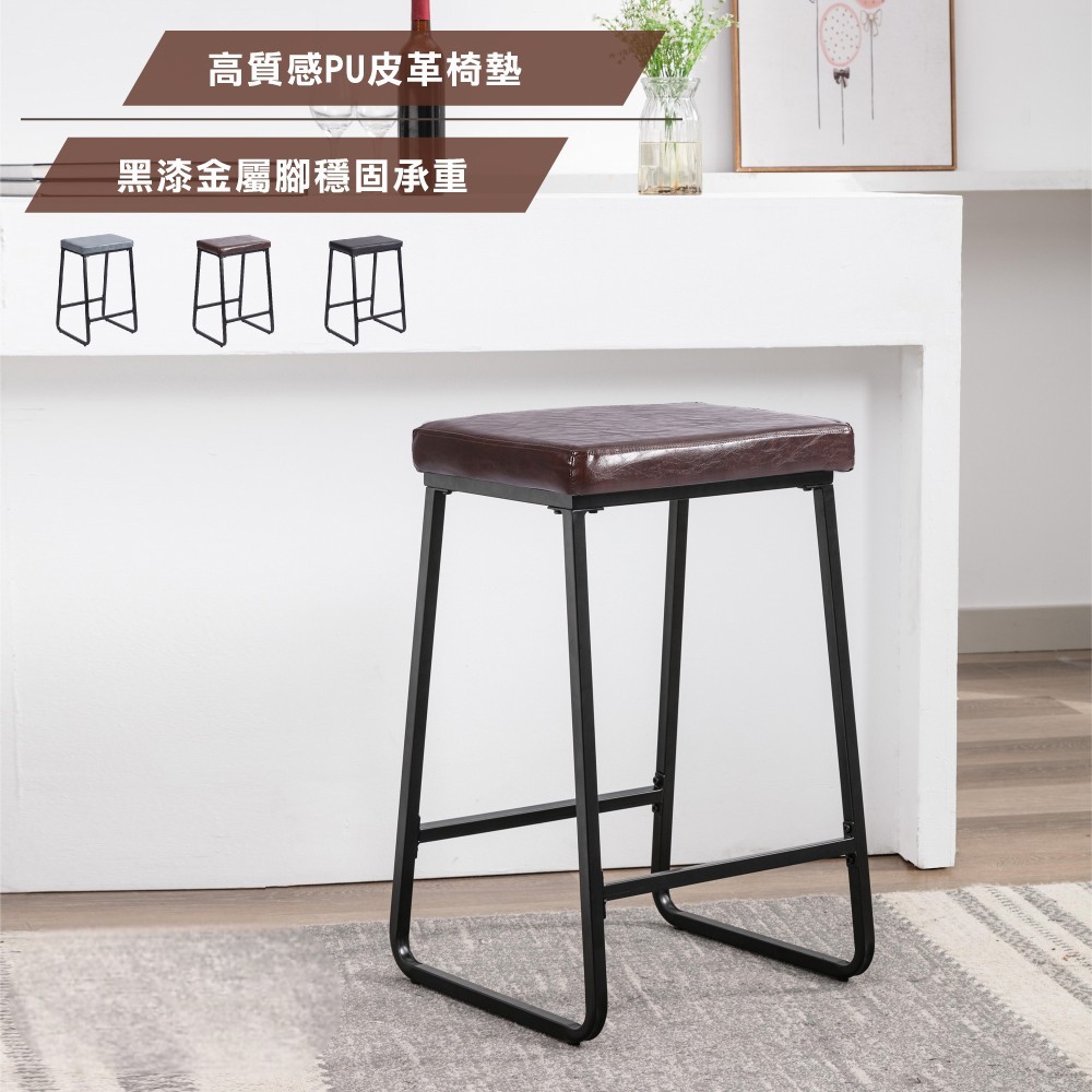 Daryl戴瑞爾復古PU黑腳吧檯椅-坐高73cm-三色可選
