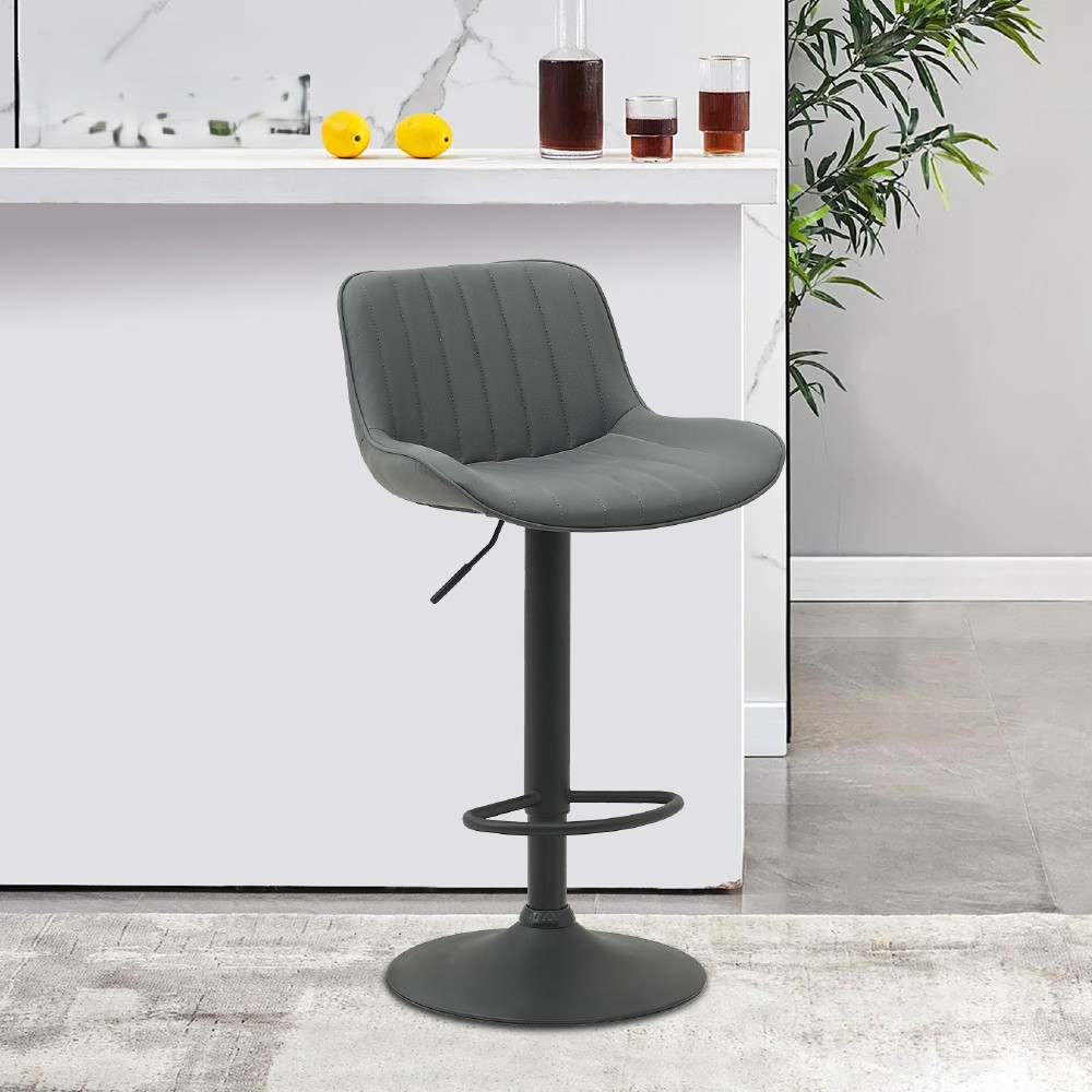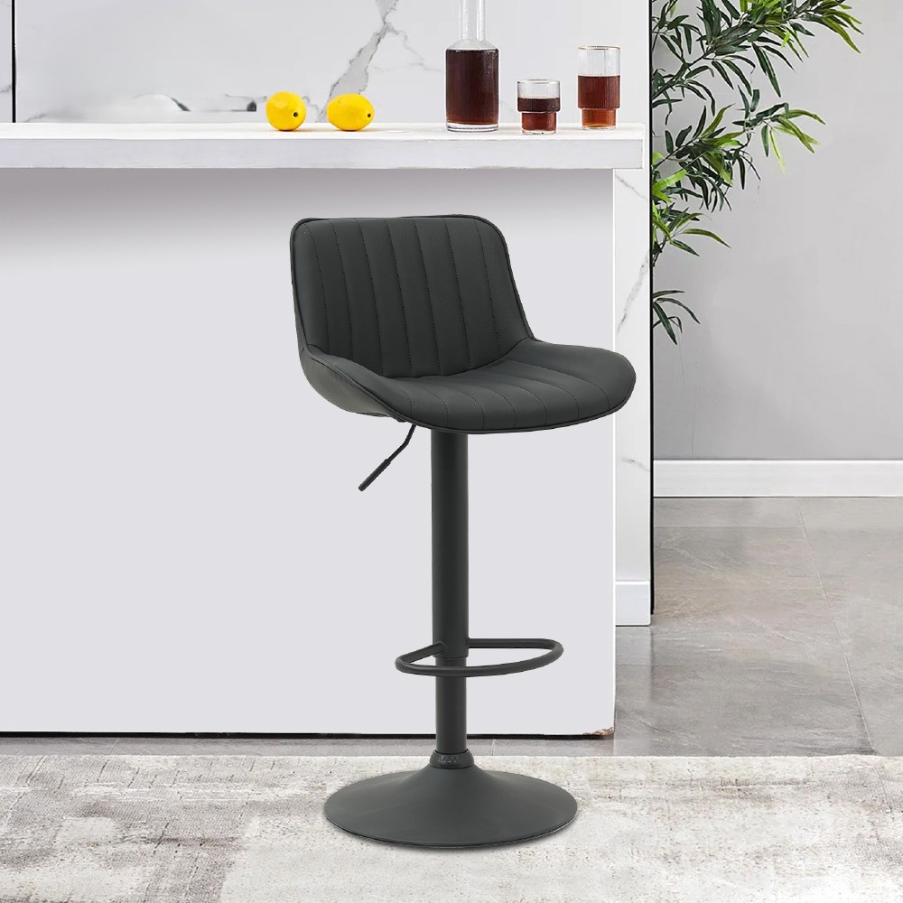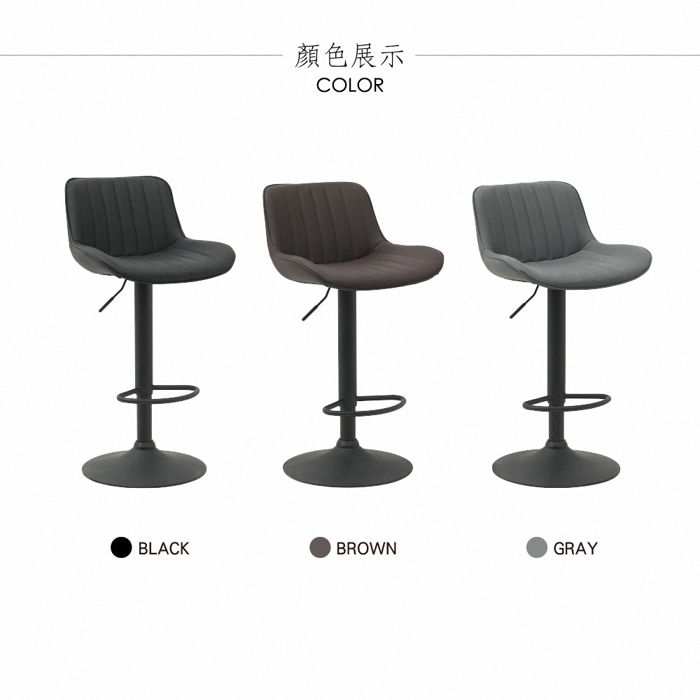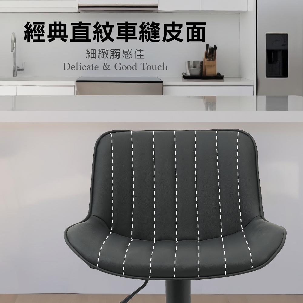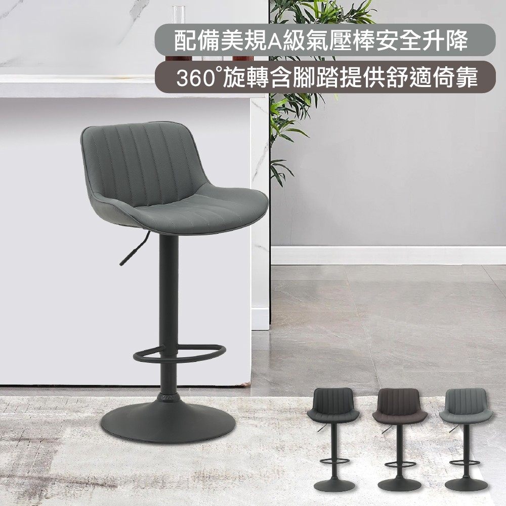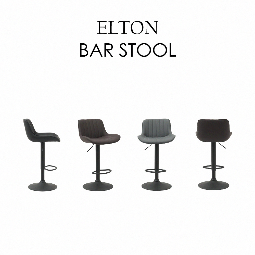 Elton艾爾頓直紋PU面黑腳可調式吧檯椅-三色可選