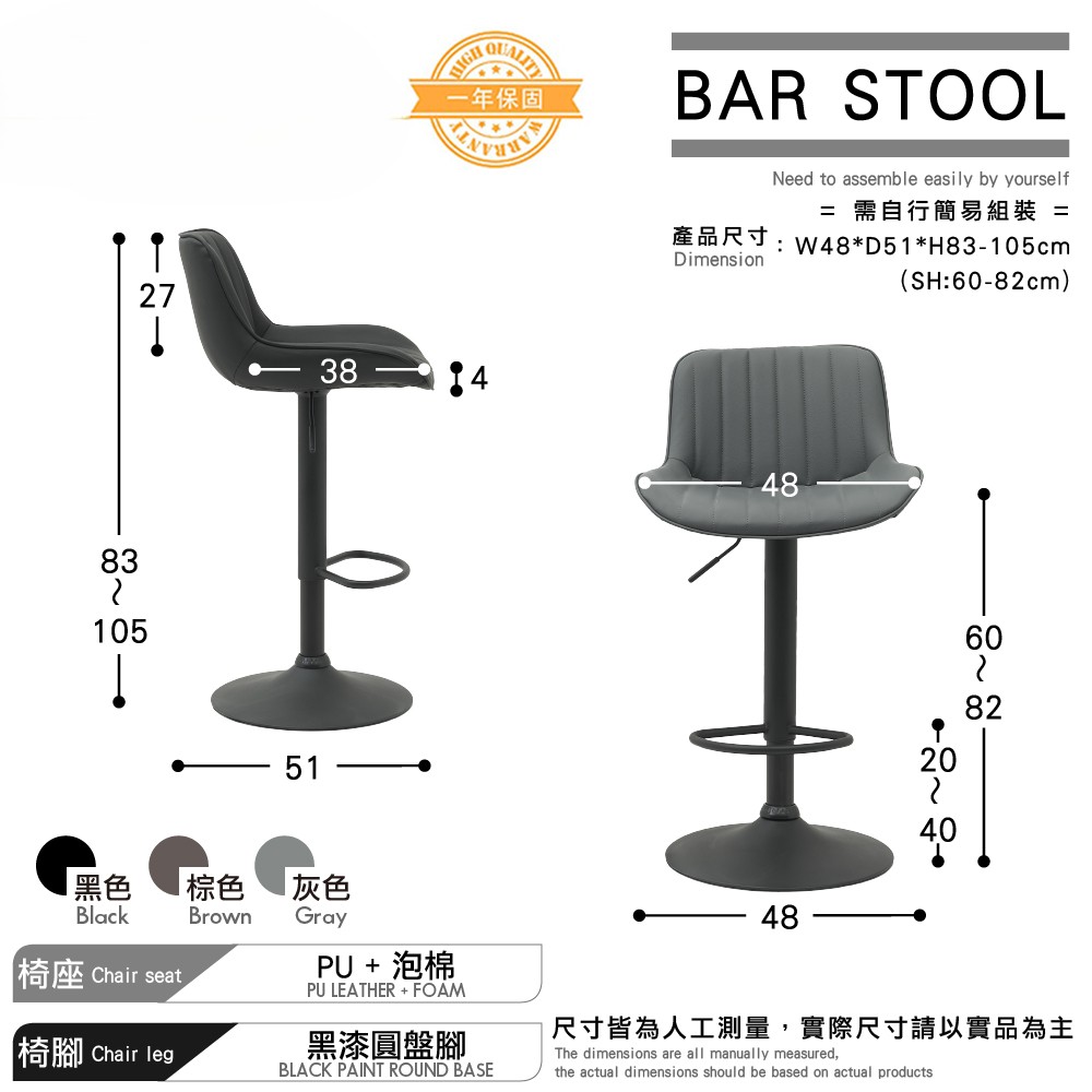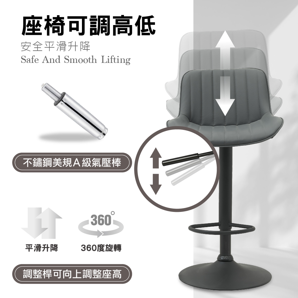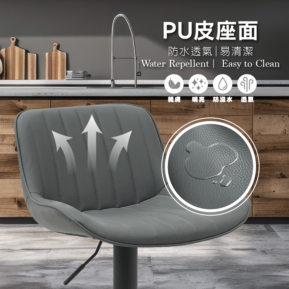 • 防潑水透氣PU皮椅面、易於清潔