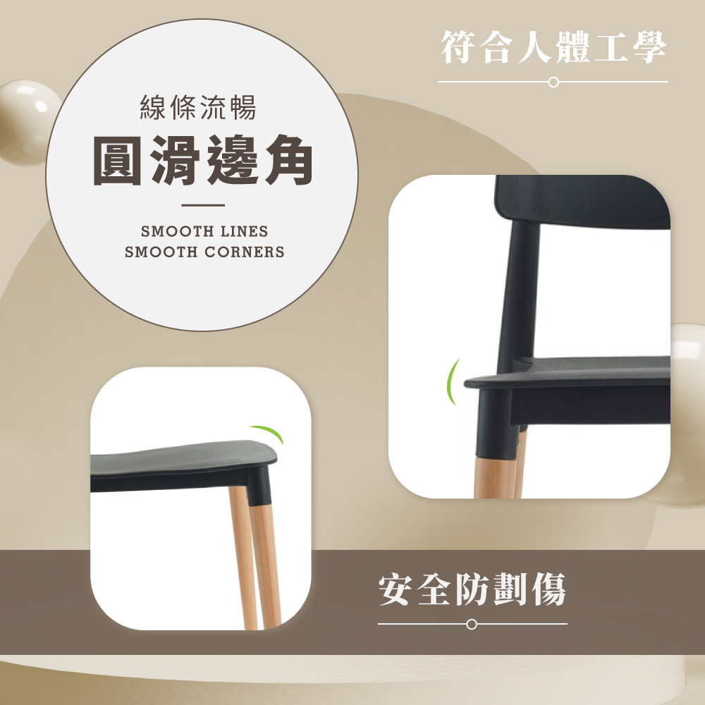 舒適倚靠透氣涼爽室內外都適合,線條流暢圓滑邊角,安全防劃傷,搭配櫸木實木椅腳,穩固且承重,