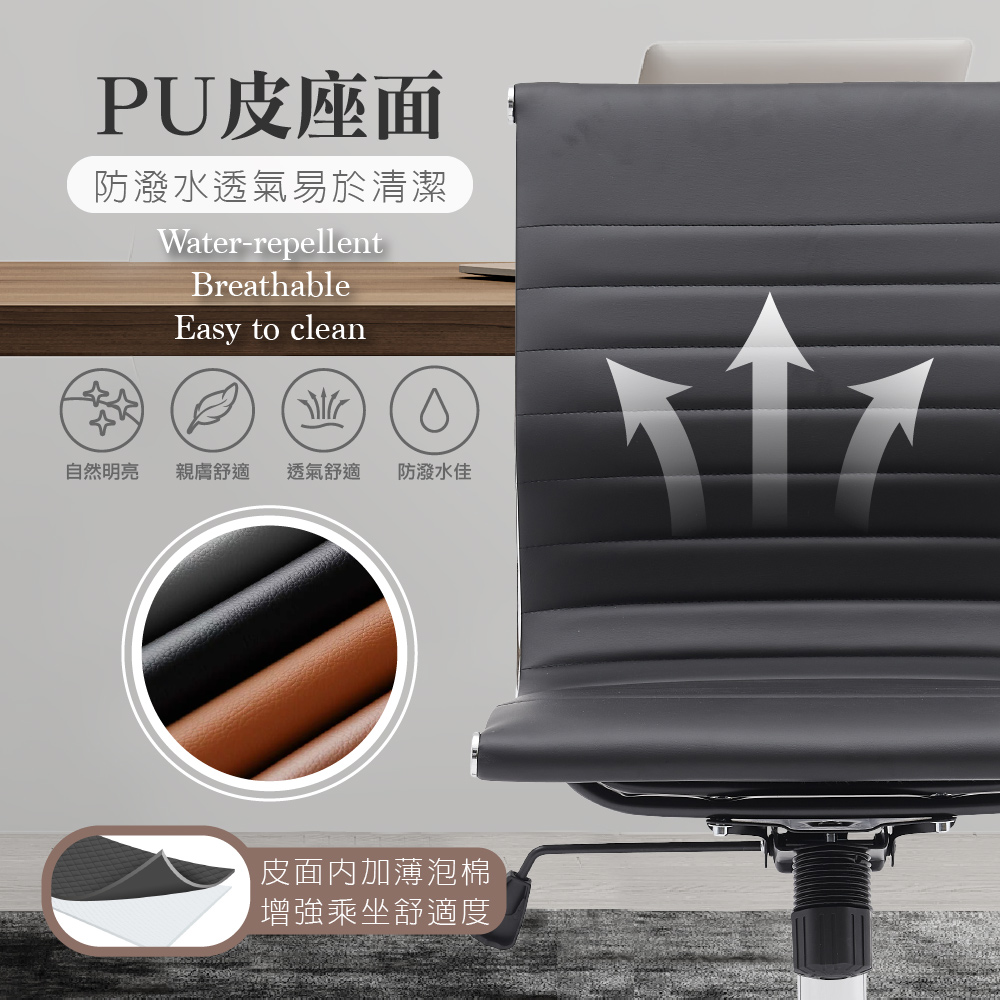 材質:PU皮 + 電鍍金屬框架 + 電鍍金屬五爪腳 + PU滑輪
