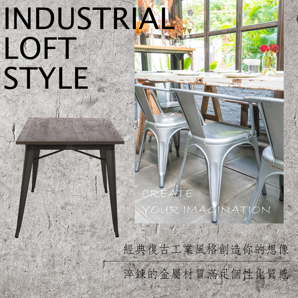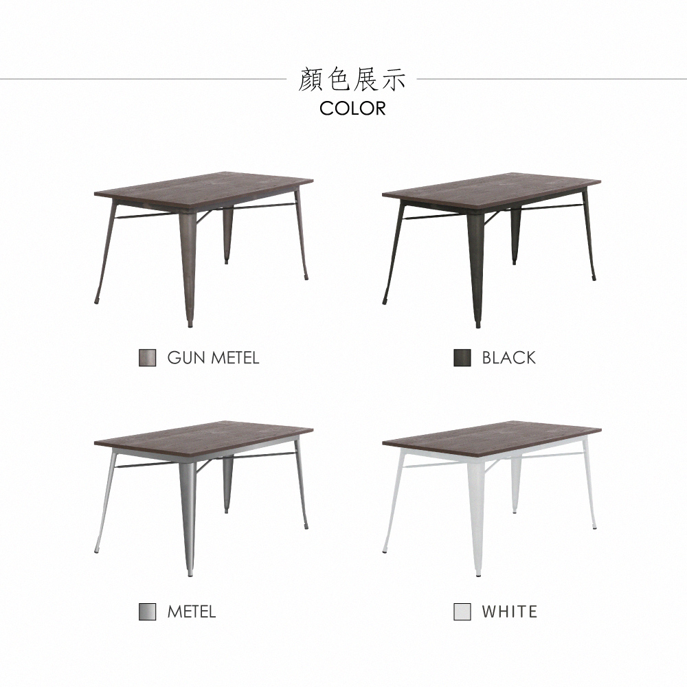Jed傑德金屬木面工業風桌-140x80cm-四色可選