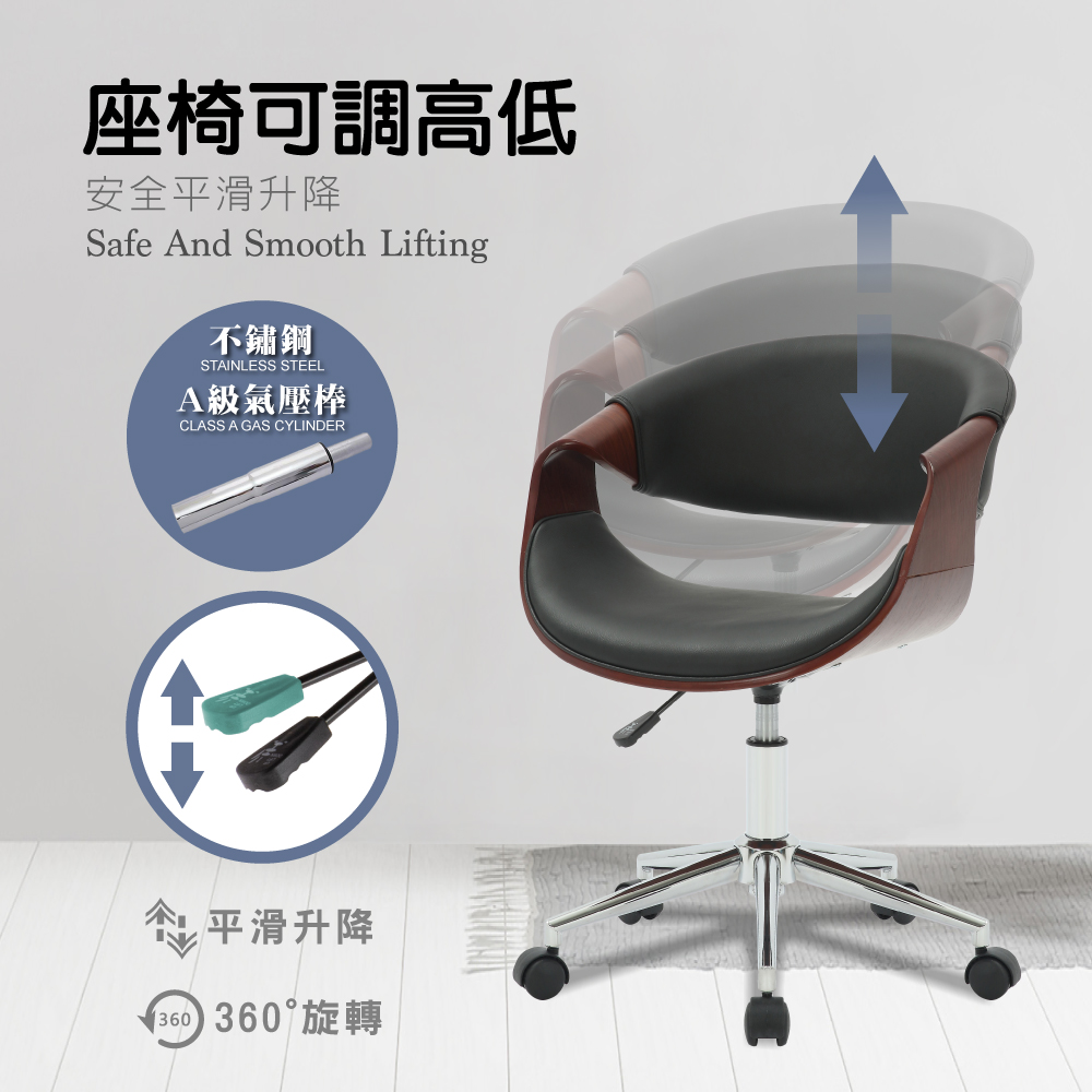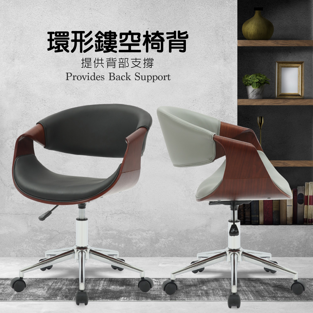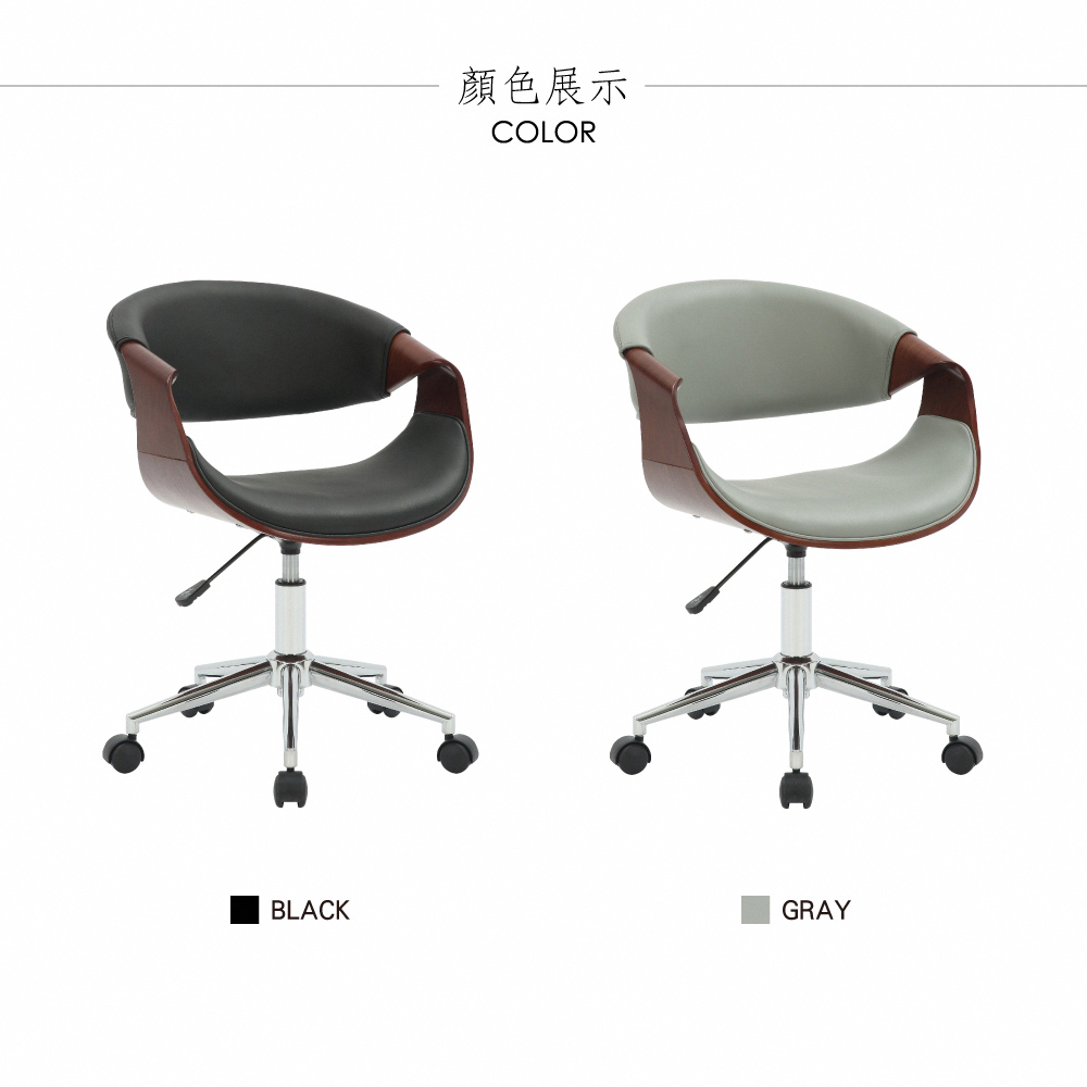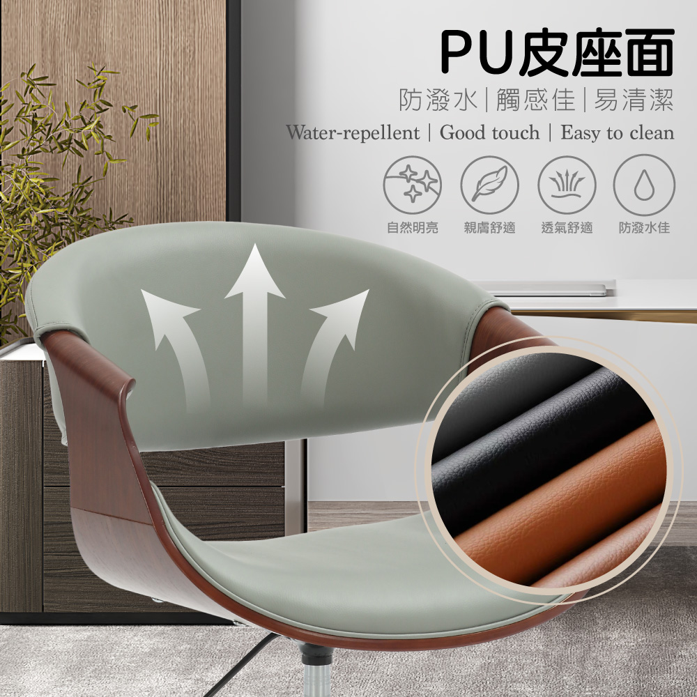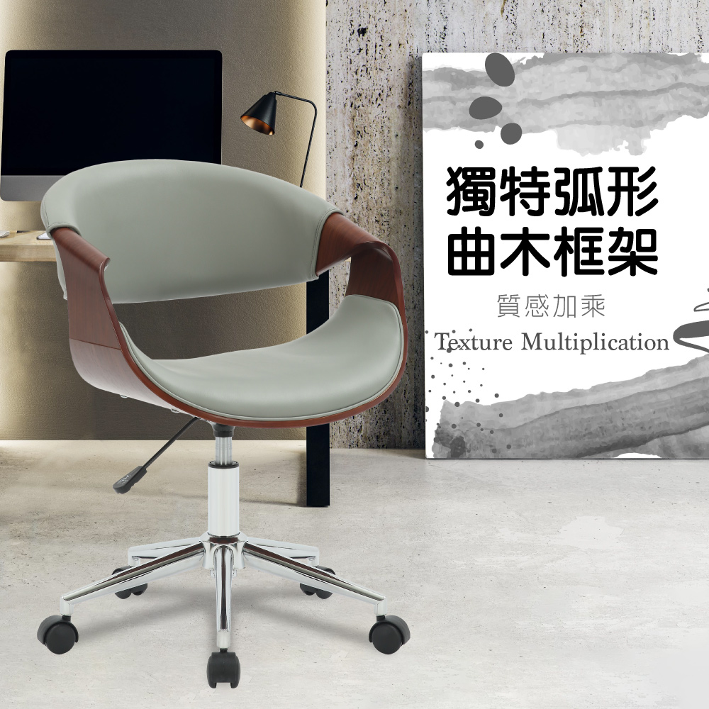Jessie傑西PU面流線曲木可調式電腦椅-兩色可選