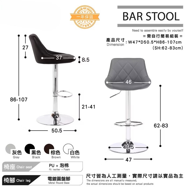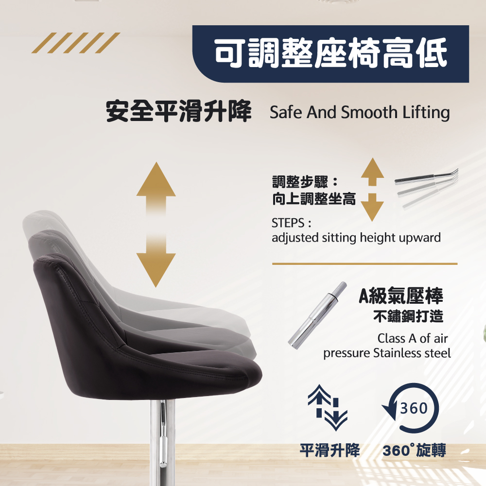 Logan羅根菱格紋皮面可調式吧檯椅-四色可選