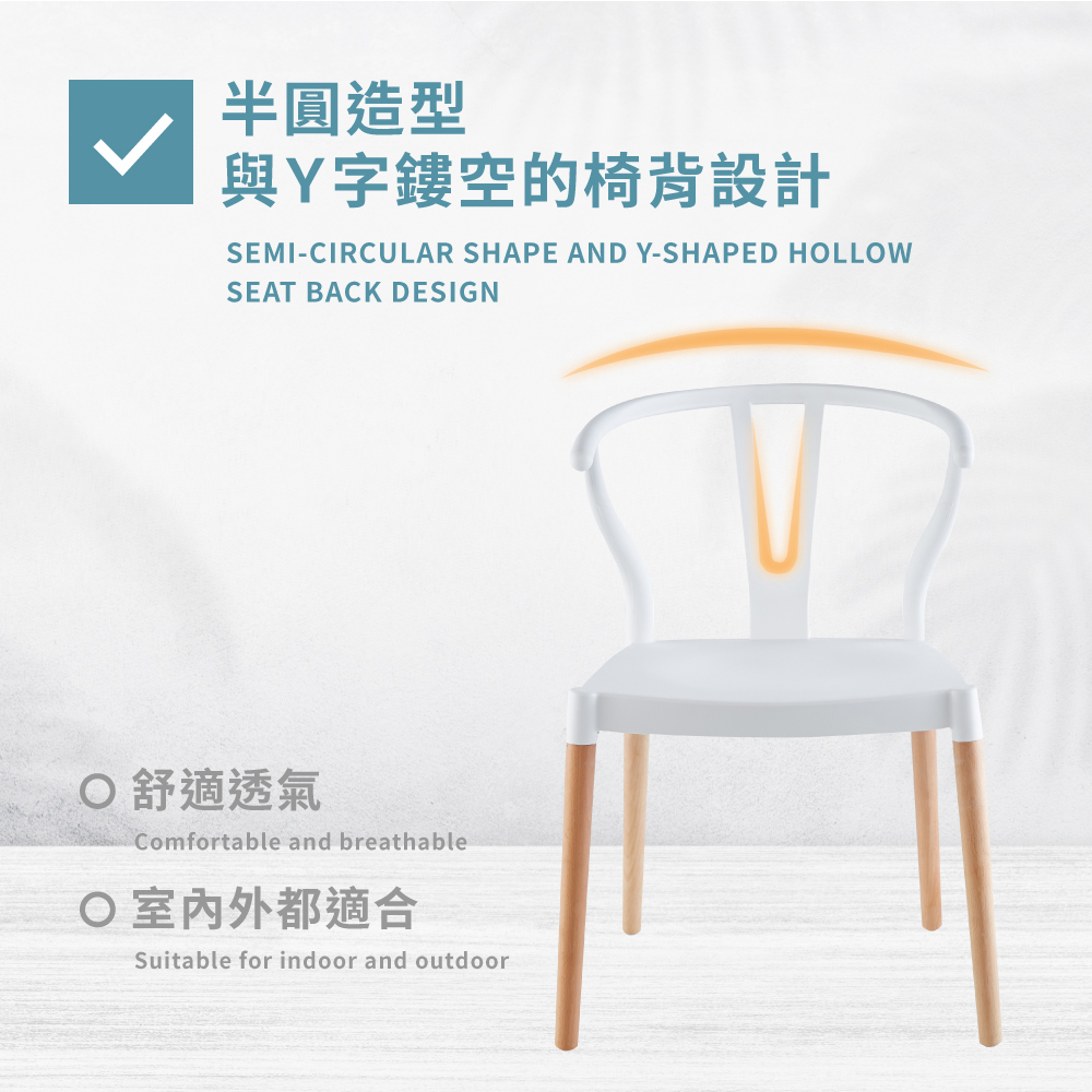 • 半圓造型與Y字鏤空的椅背設計