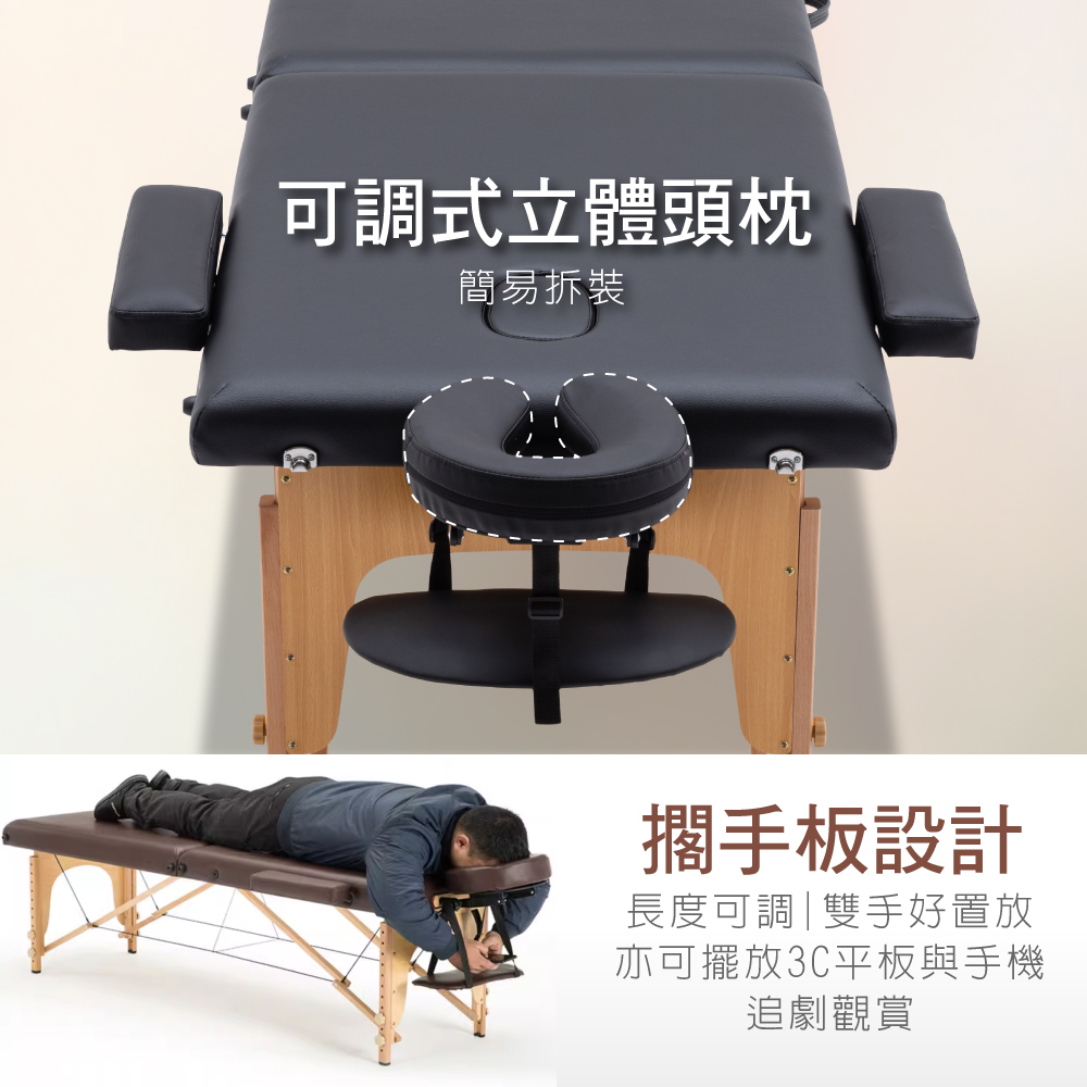Mellow梅洛實木腳附牛津布背袋折疊按摩推拿刺青床-寬76cm-四色可選