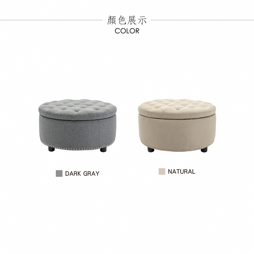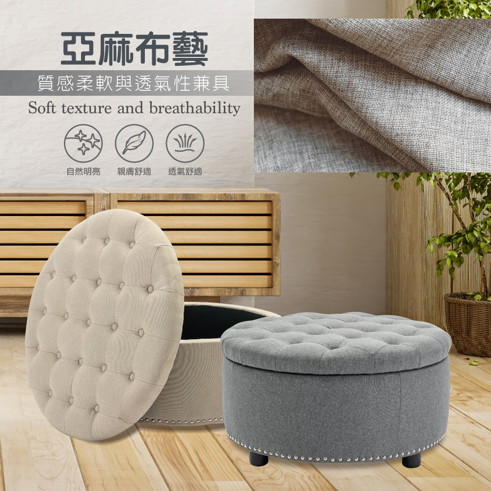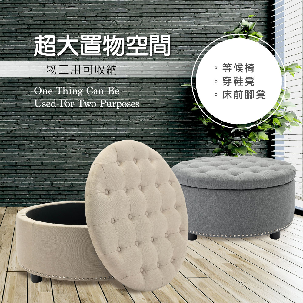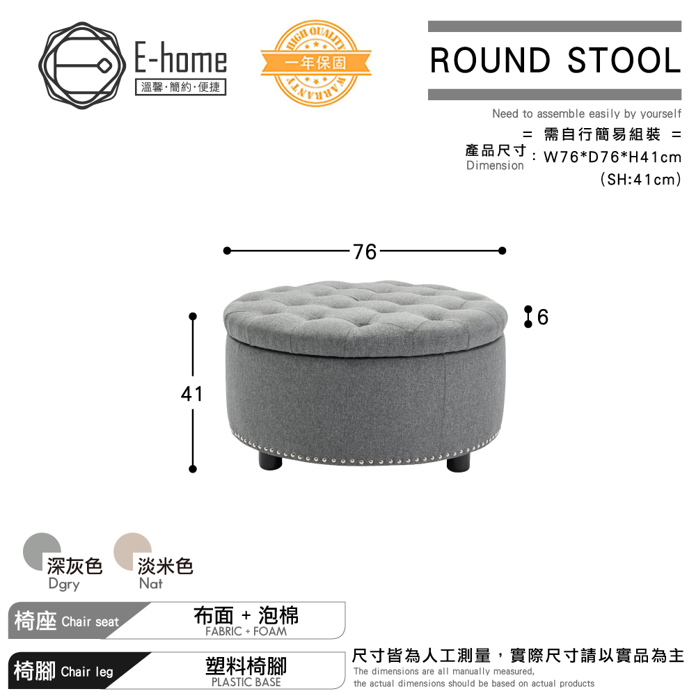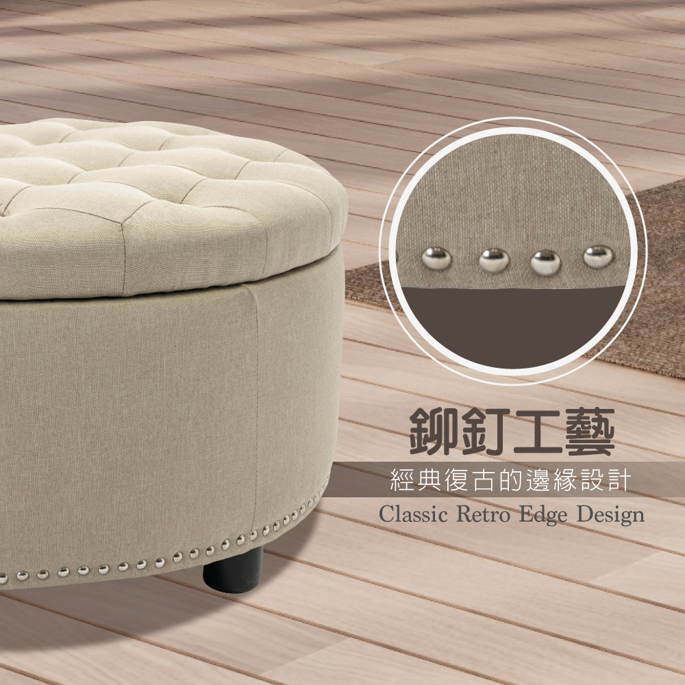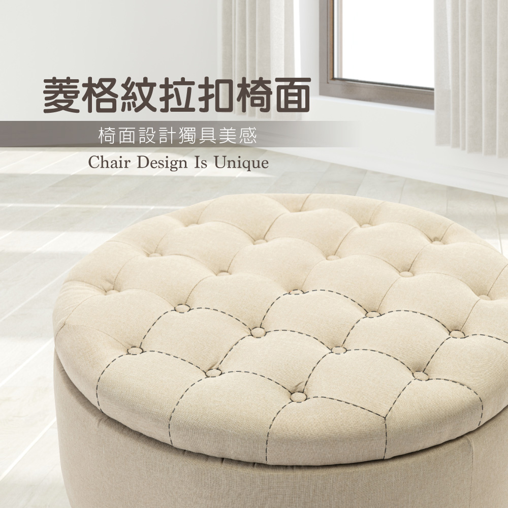 Nala娜拉菱紋拉扣布面鉚釘邊圓凳-幅76cm-兩色可選