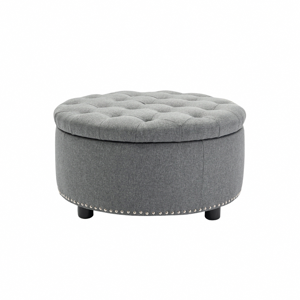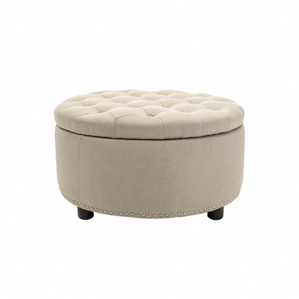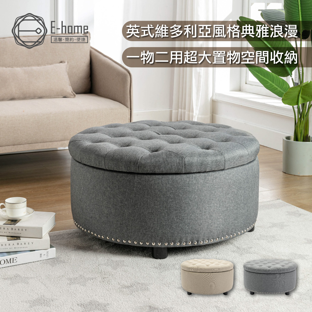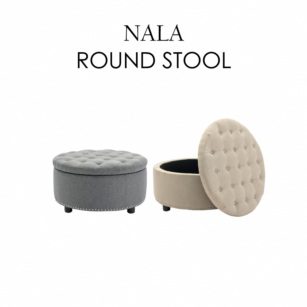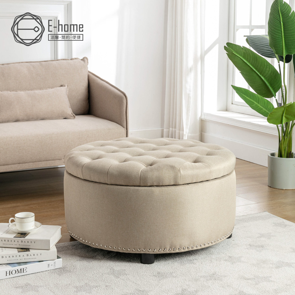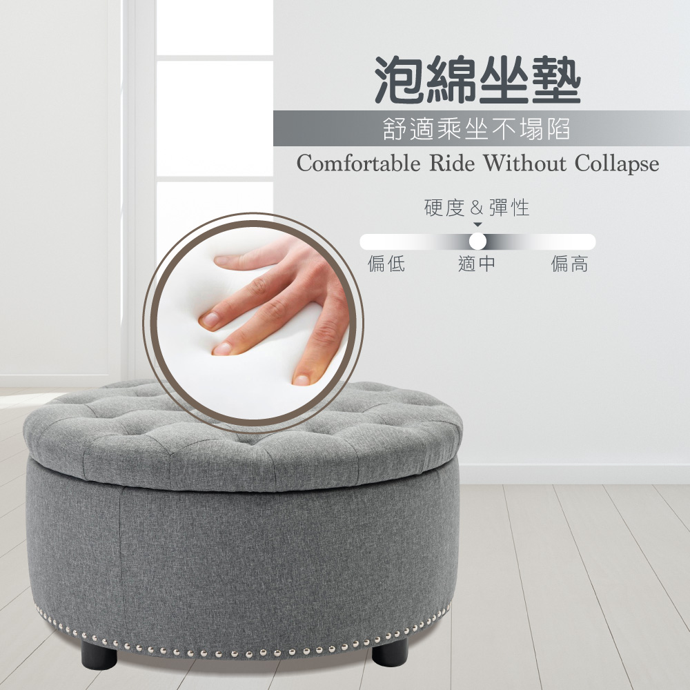 Nala娜拉菱紋拉扣布面鉚釘邊圓凳-幅76cm-兩色可選