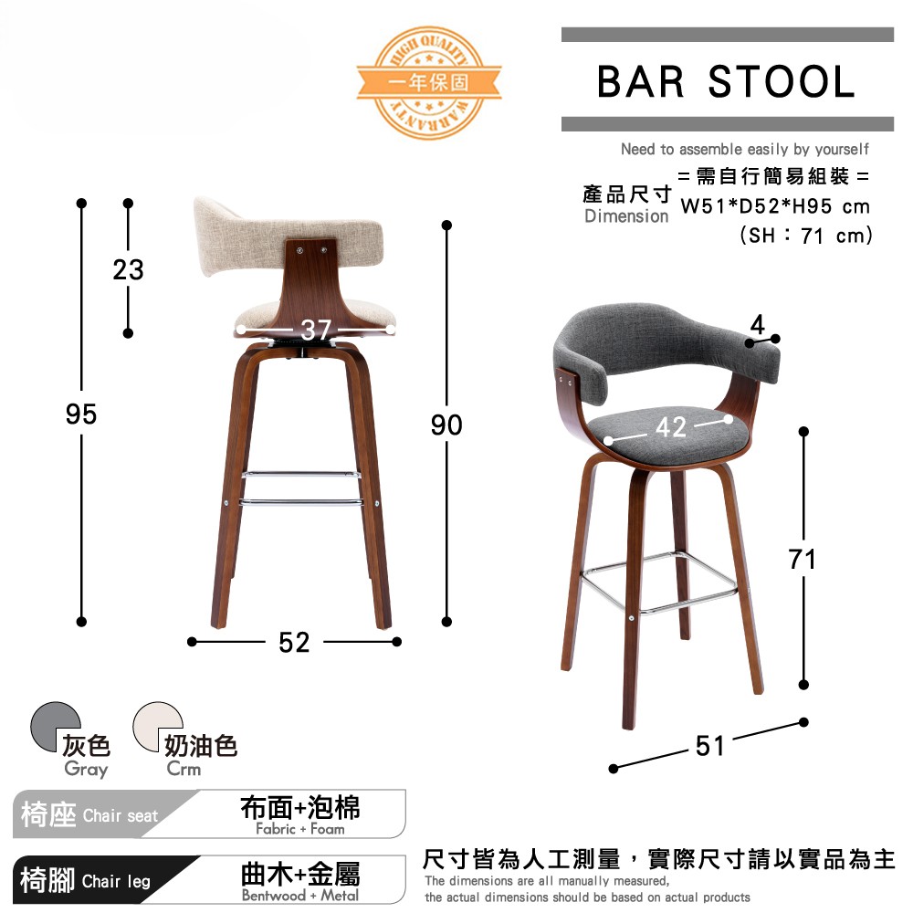 產品尺寸:W51*D52*H95 cm (SH:71 cm)