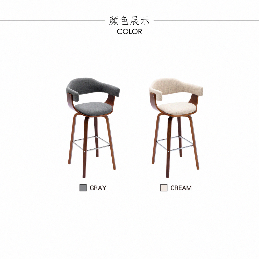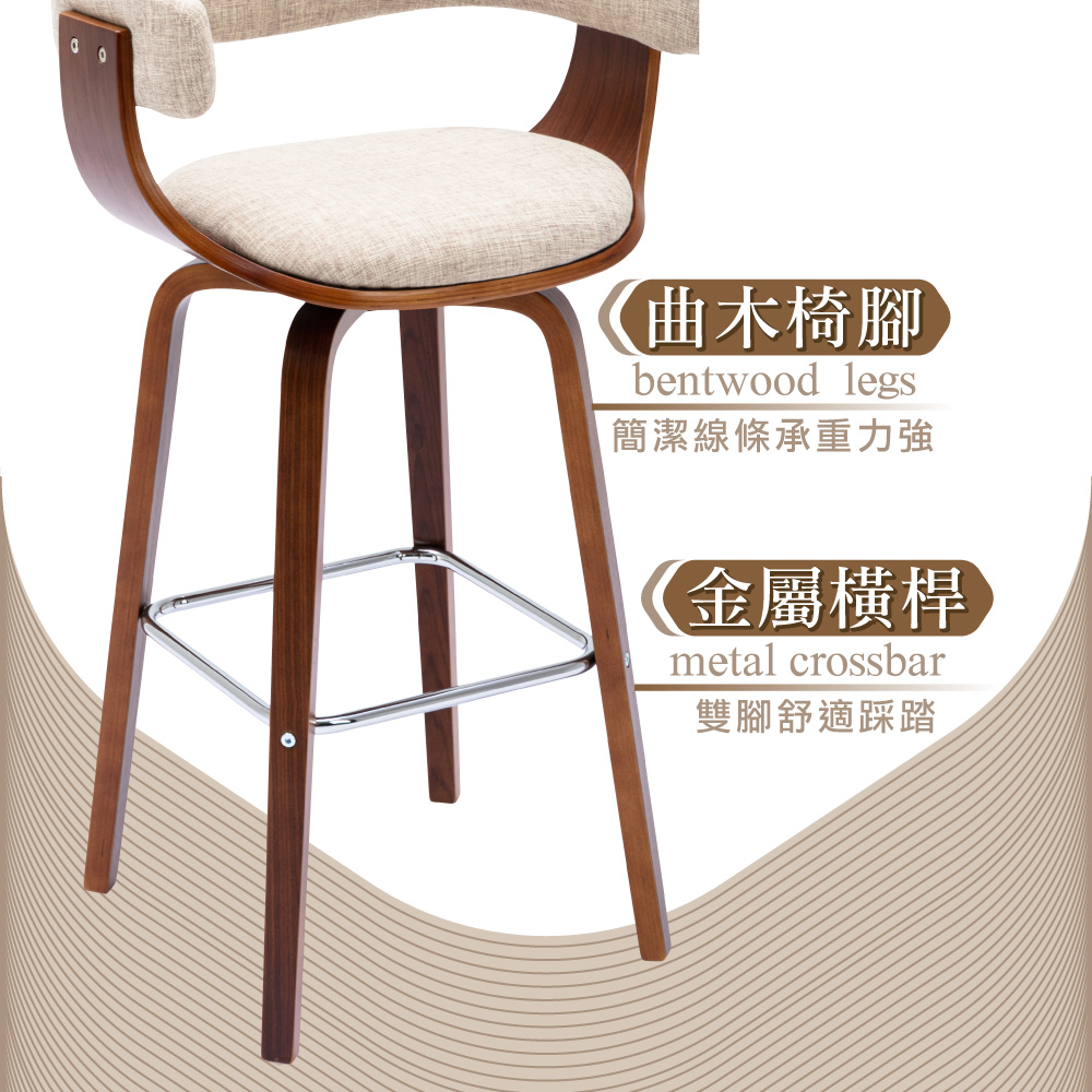Nelly奈莉布面曲木可旋轉固定吧檯椅-坐高71cm-兩色可選