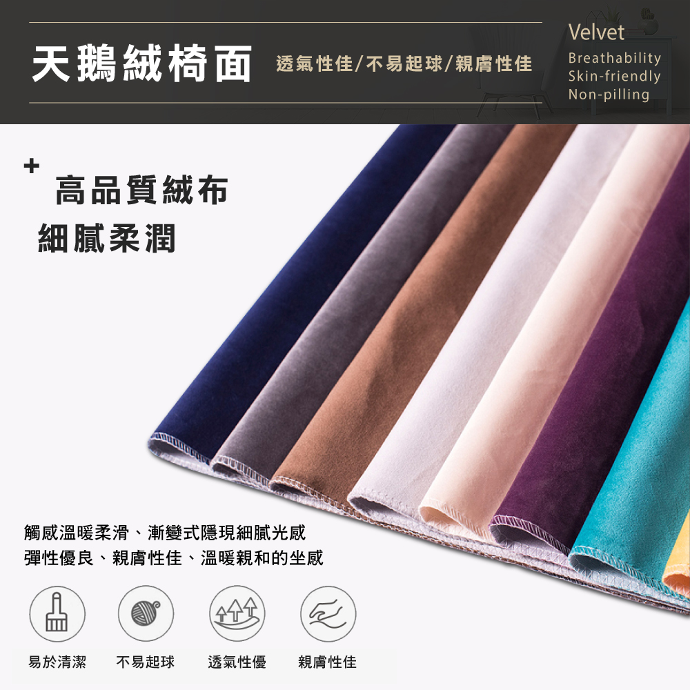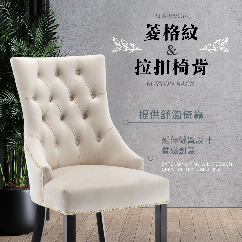 台灣與歐美同步販售、美規設計,低調而又不失華麗的天鵝絨座面,菱格紋配拉扣椅背提供舒適倚靠,