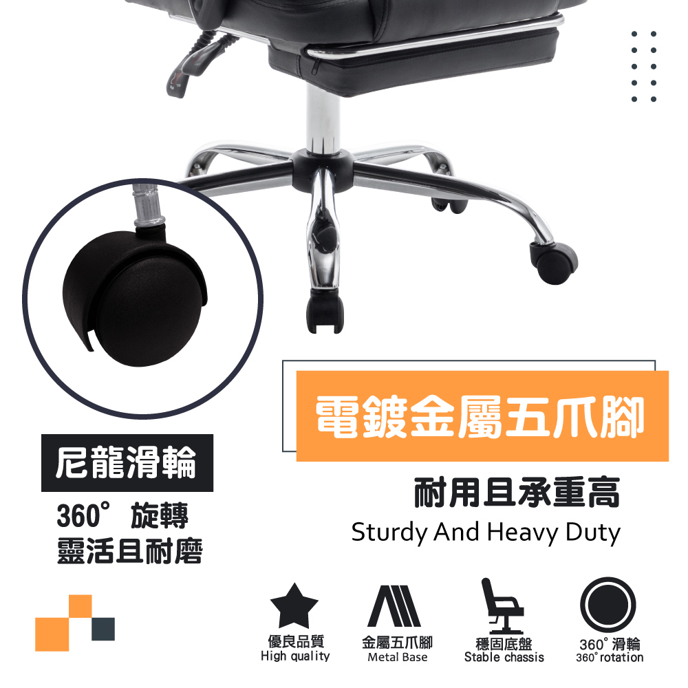材質:PU + 泡棉 + 電鍍金屬五爪腳 + 尼龍滑輪