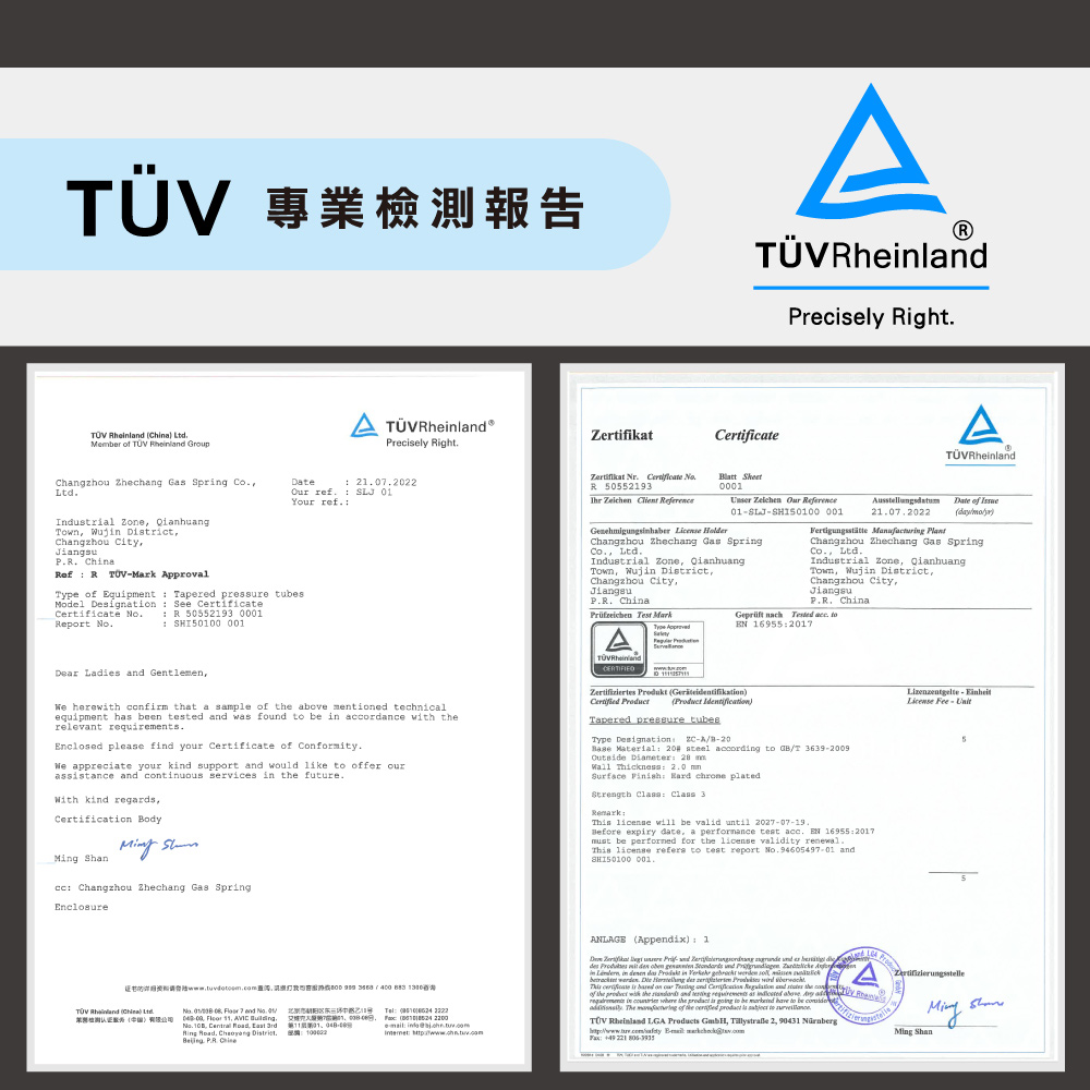 配TUV認證A級氣壓棒、安全升降,附有可伸縮腳墊、提供仰躺擺放,電鍍金屬五爪腳、耐用且承重高,