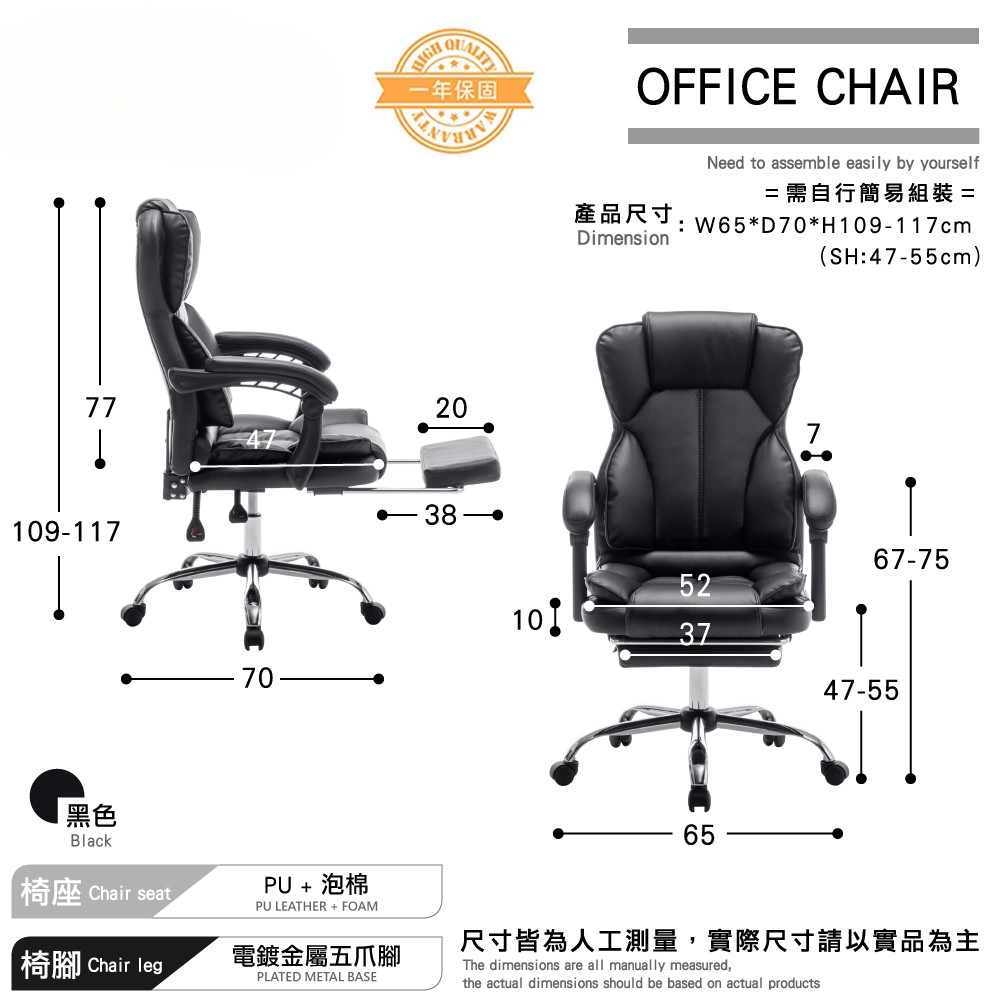 產品尺寸:W65*D70*H109-117 cm(SH:47-55 cm)