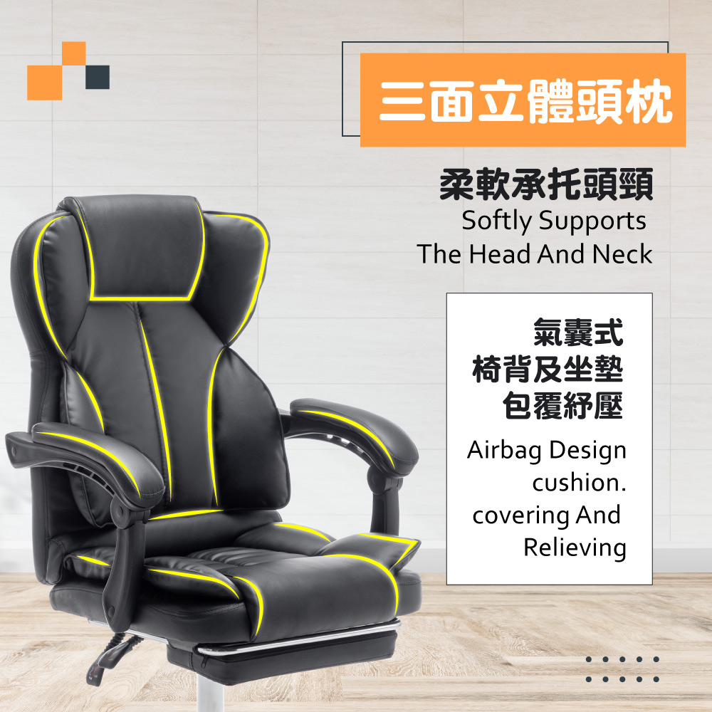 創新氣囊式椅背設計,包覆紓壓,厚實PU面連動式扶手雙手好擺放,高密度泡棉椅座讓坐感更加舒適,
