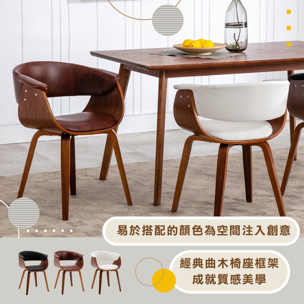 Vanilla維妮拉PU面扶手曲木休閒餐椅-三色可選