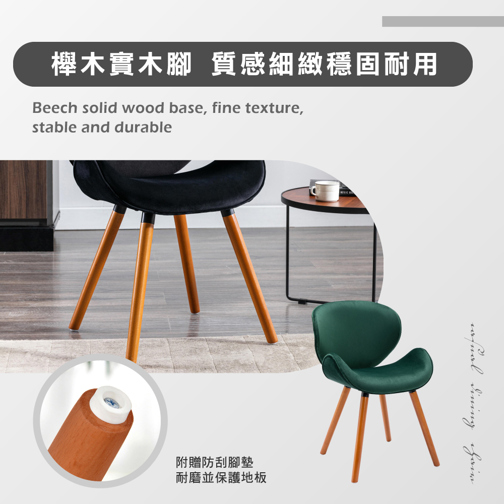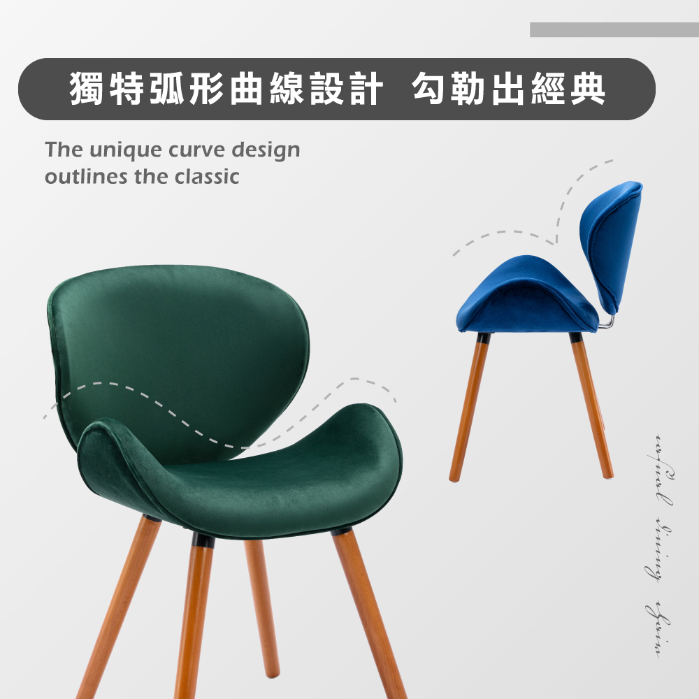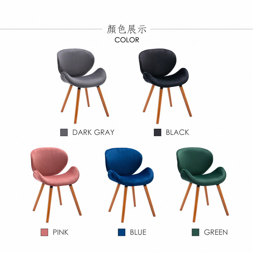 Vigo維格流線絨布實木腳休閒餐椅-五色可選
