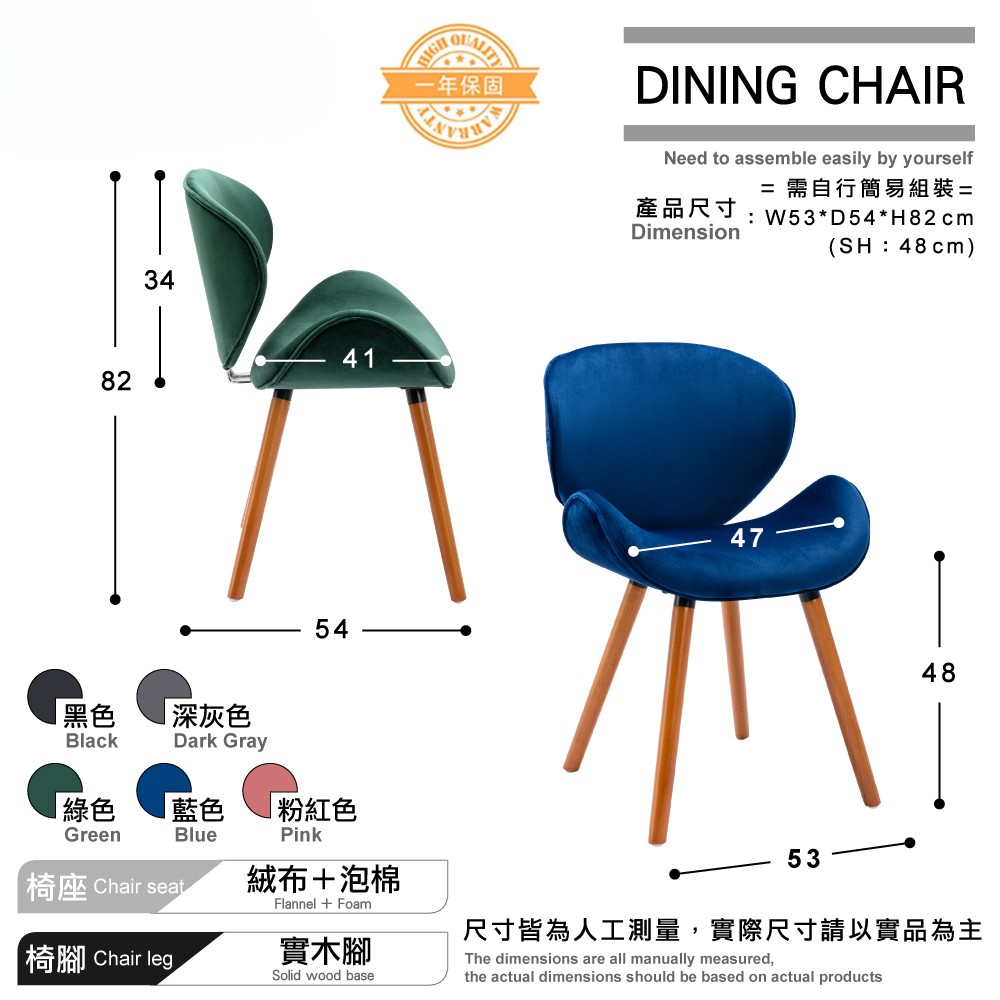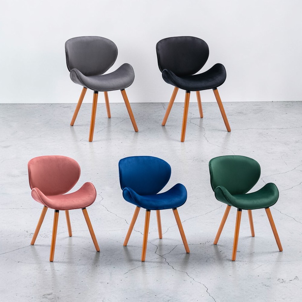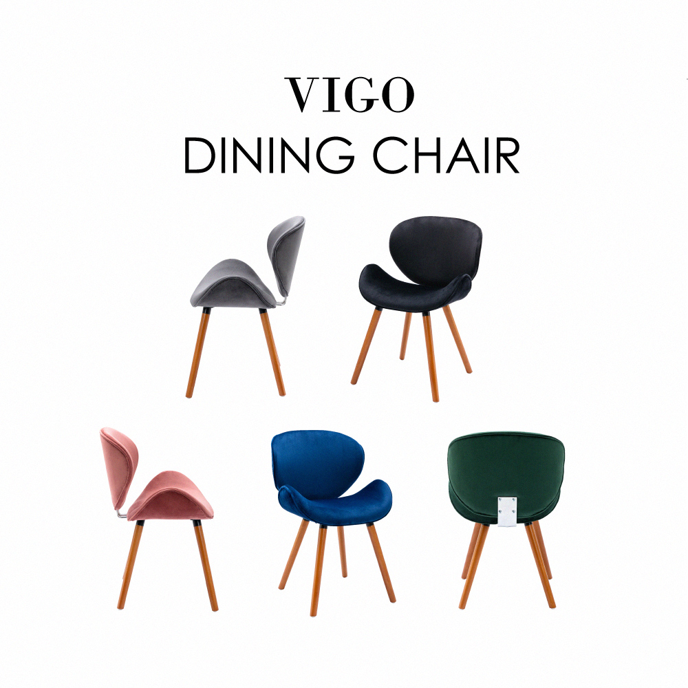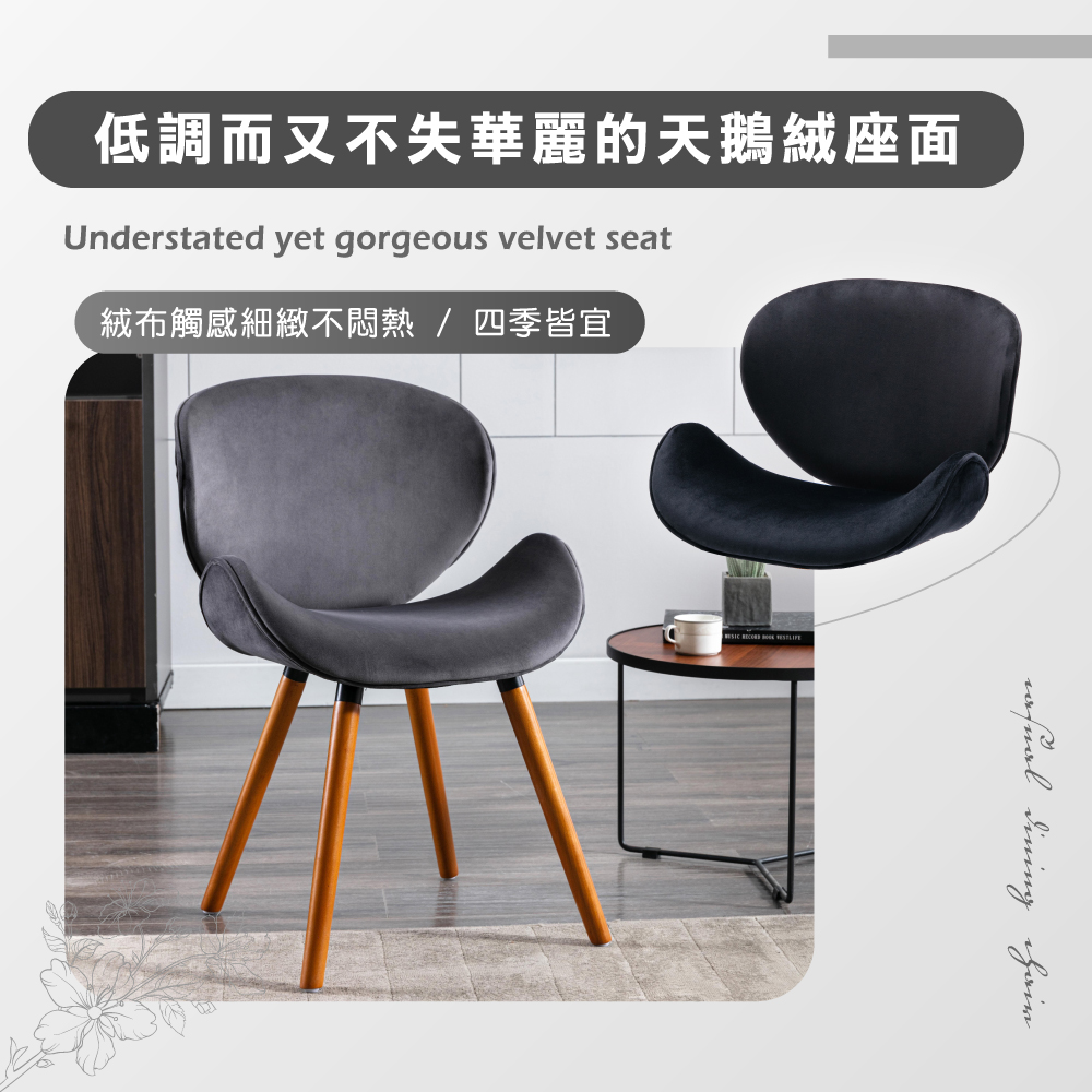 Vigo維格流線絨布實木腳休閒餐椅-五色可選
