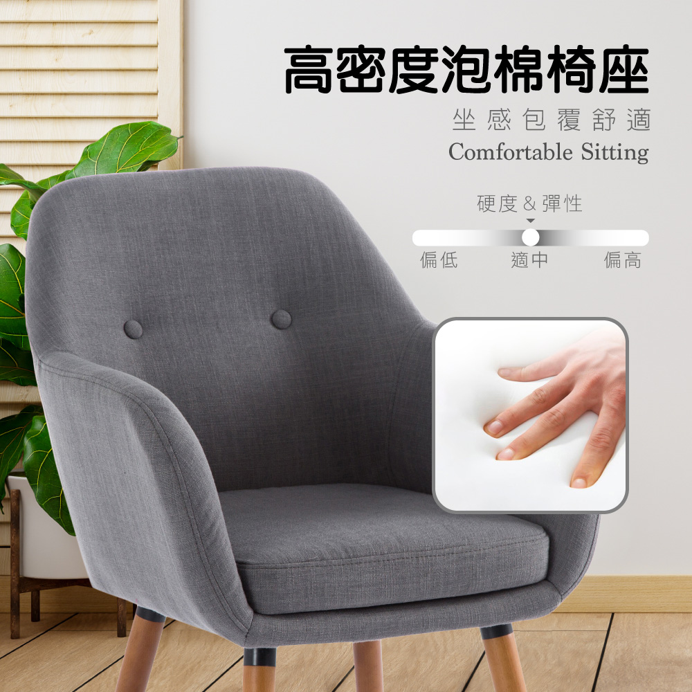 厚實拉扣椅背可以讓您舒適倚靠,飽滿扶手線條提供雙手輕鬆支撐,高密度泡棉椅座讓坐感包覆舒適,