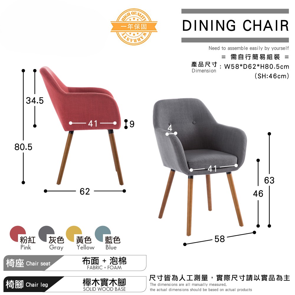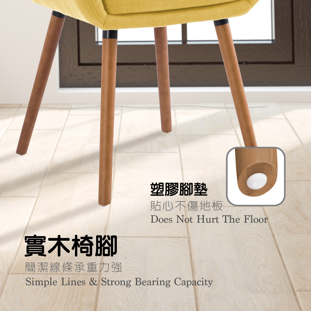 搭配簡潔線條實木椅腳承重力強,配有塑膠的腳墊、貼心不傷地板,易於搭配的顏色為空間注入創意,
